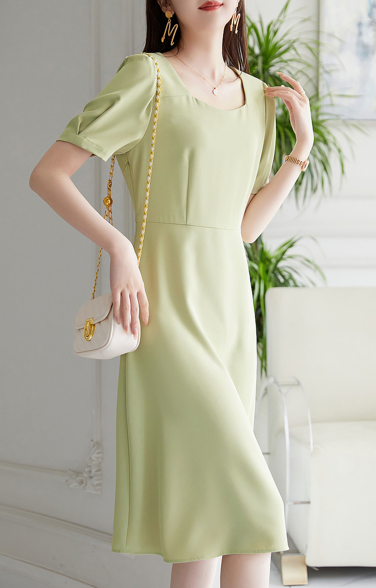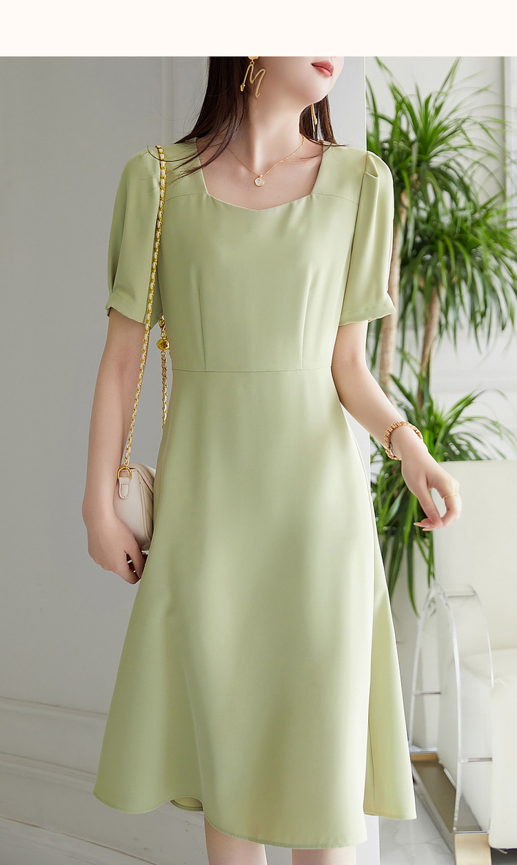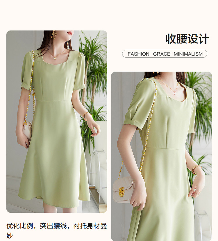 【通勤方领收腰裙】夏简约短袖x型连衣裙女中长款 415105