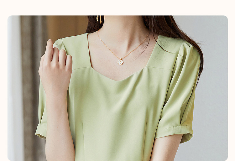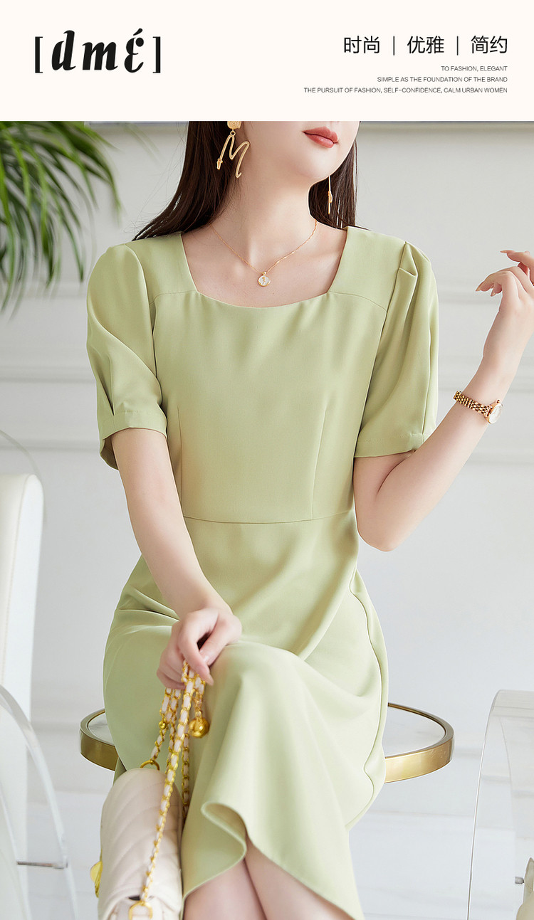 商品名称:【通勤方领收腰裙】夏简约短袖x型连衣裙女中长款 415105