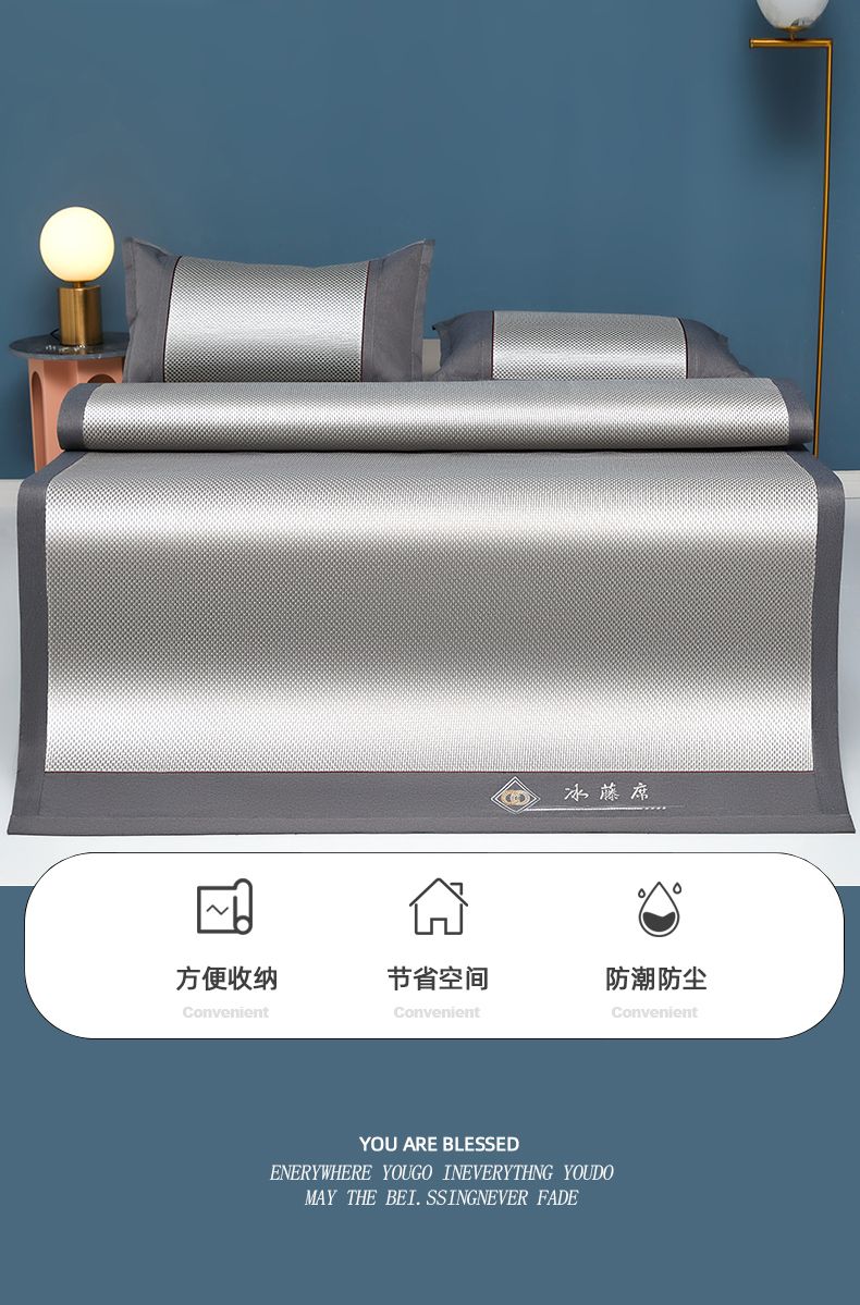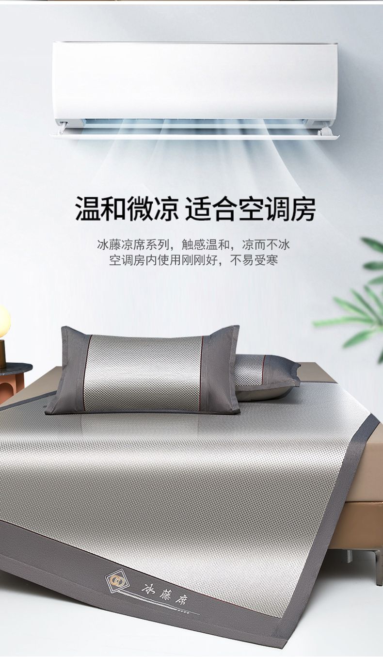 商品名称:雅鹿刺绣冰藤席三件套系列