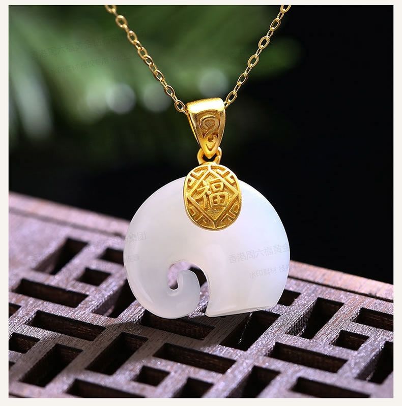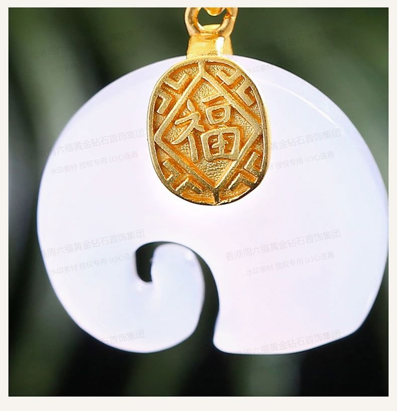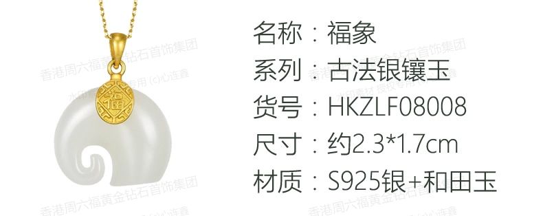香港周六福黄金钻石首饰古法银镶嵌和田玉-福象