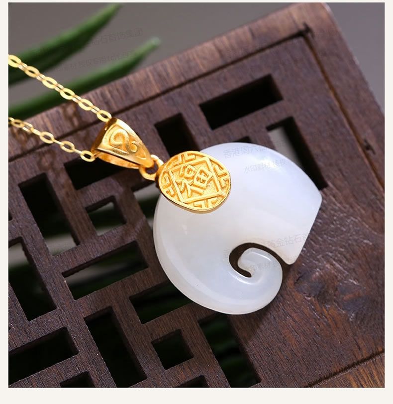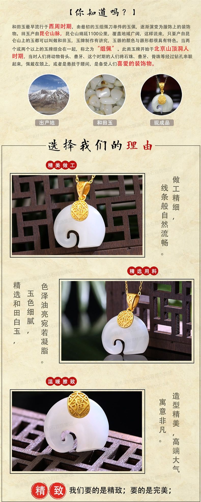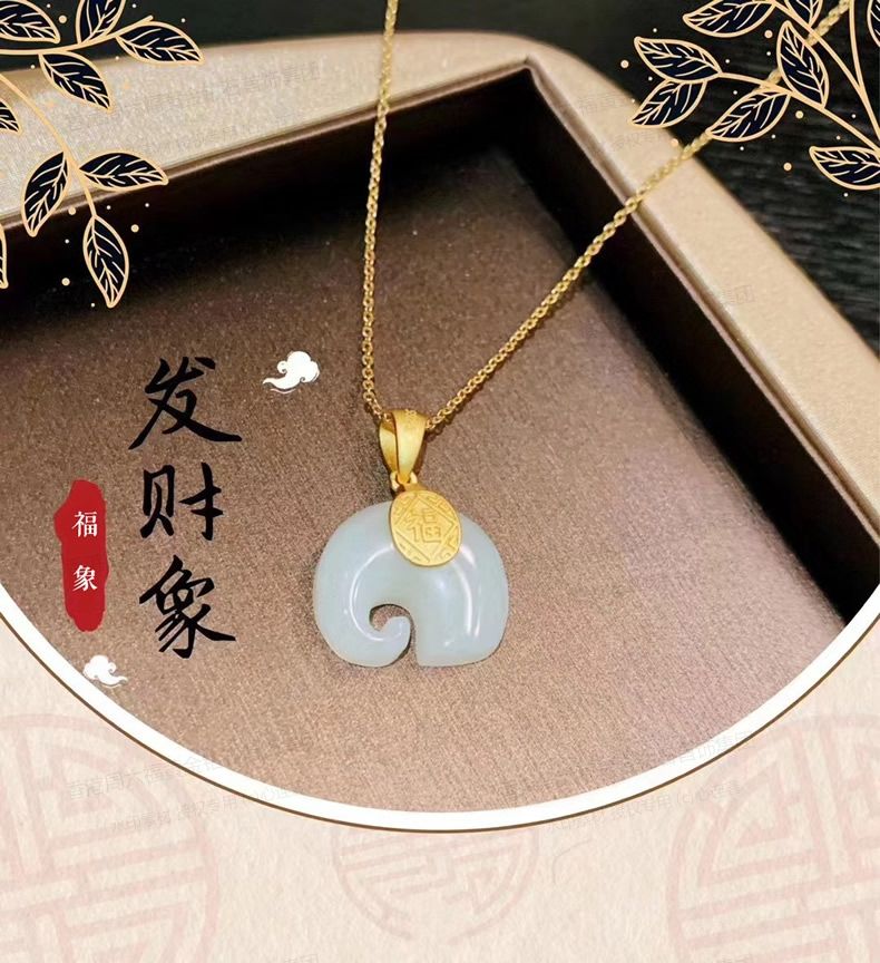 商品名称:香港周六福黄金钻石首饰古法银镶嵌和田玉-福象
