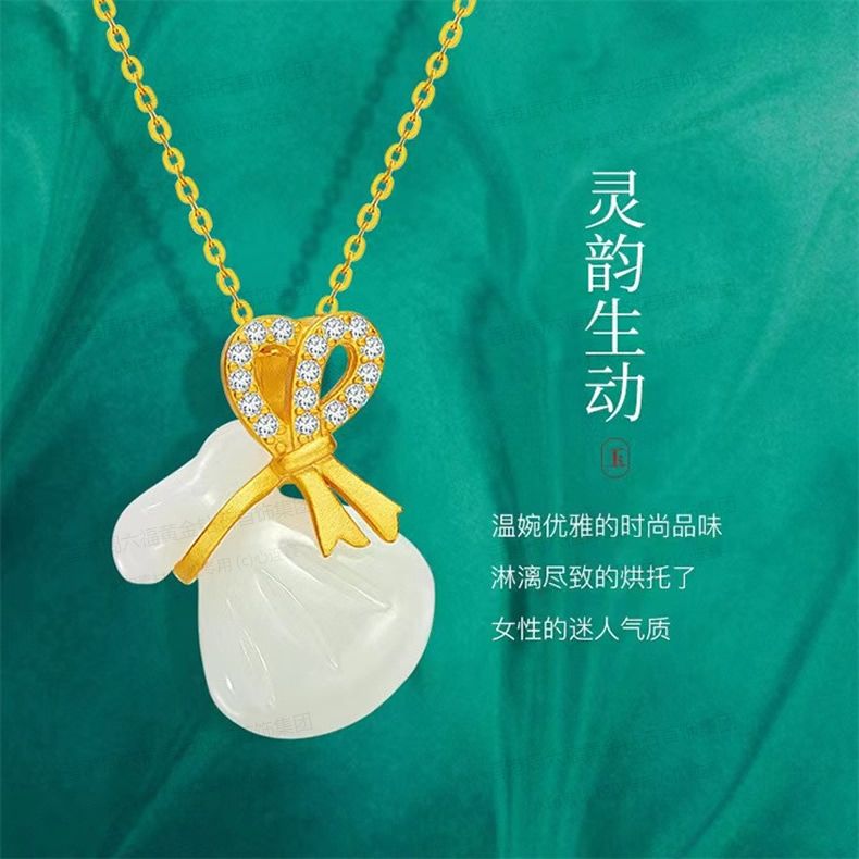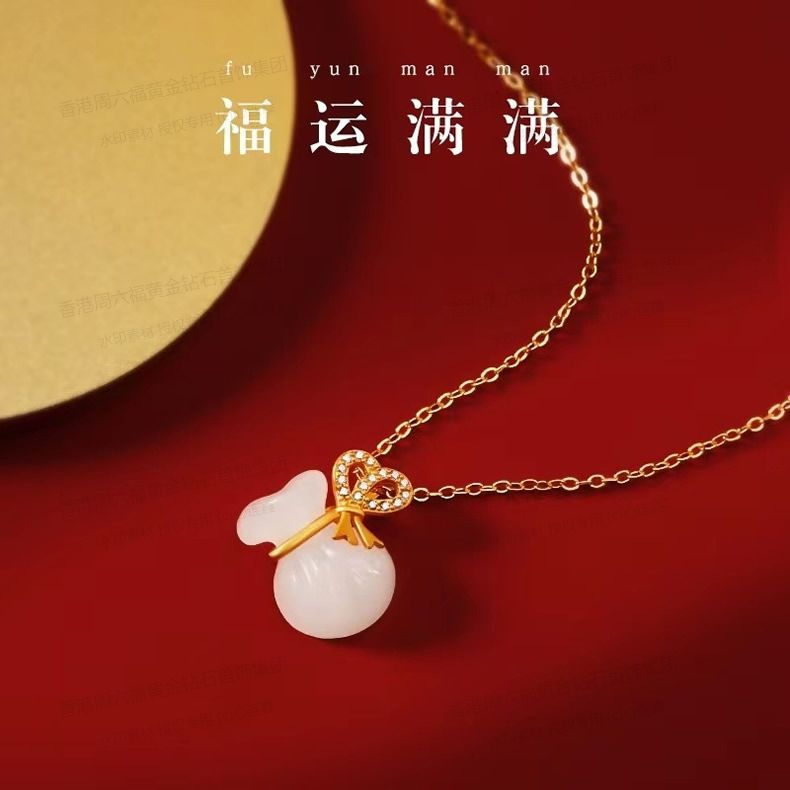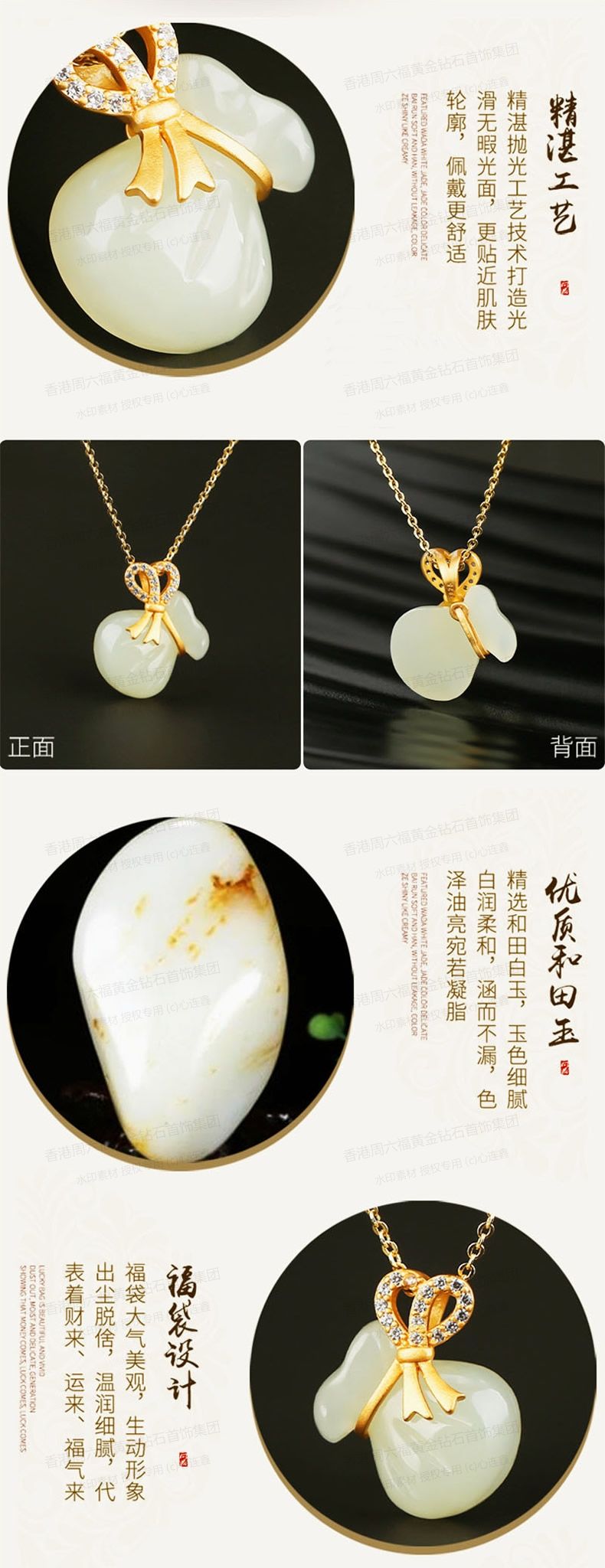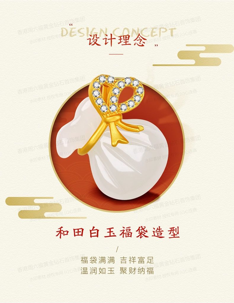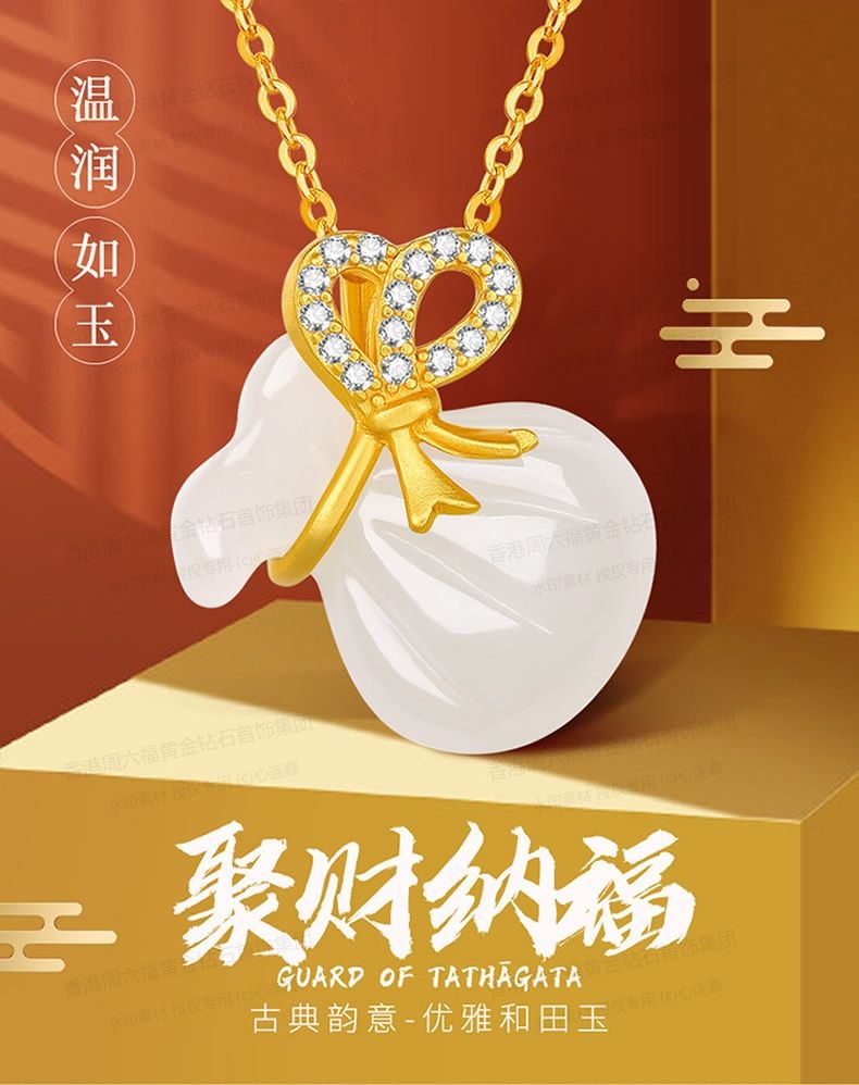 香港周六福黄金钻石首饰古法银镶嵌和田玉-福袋