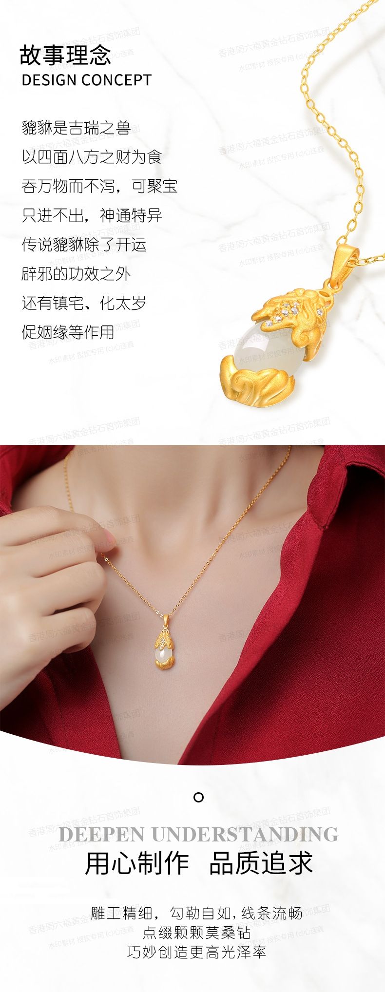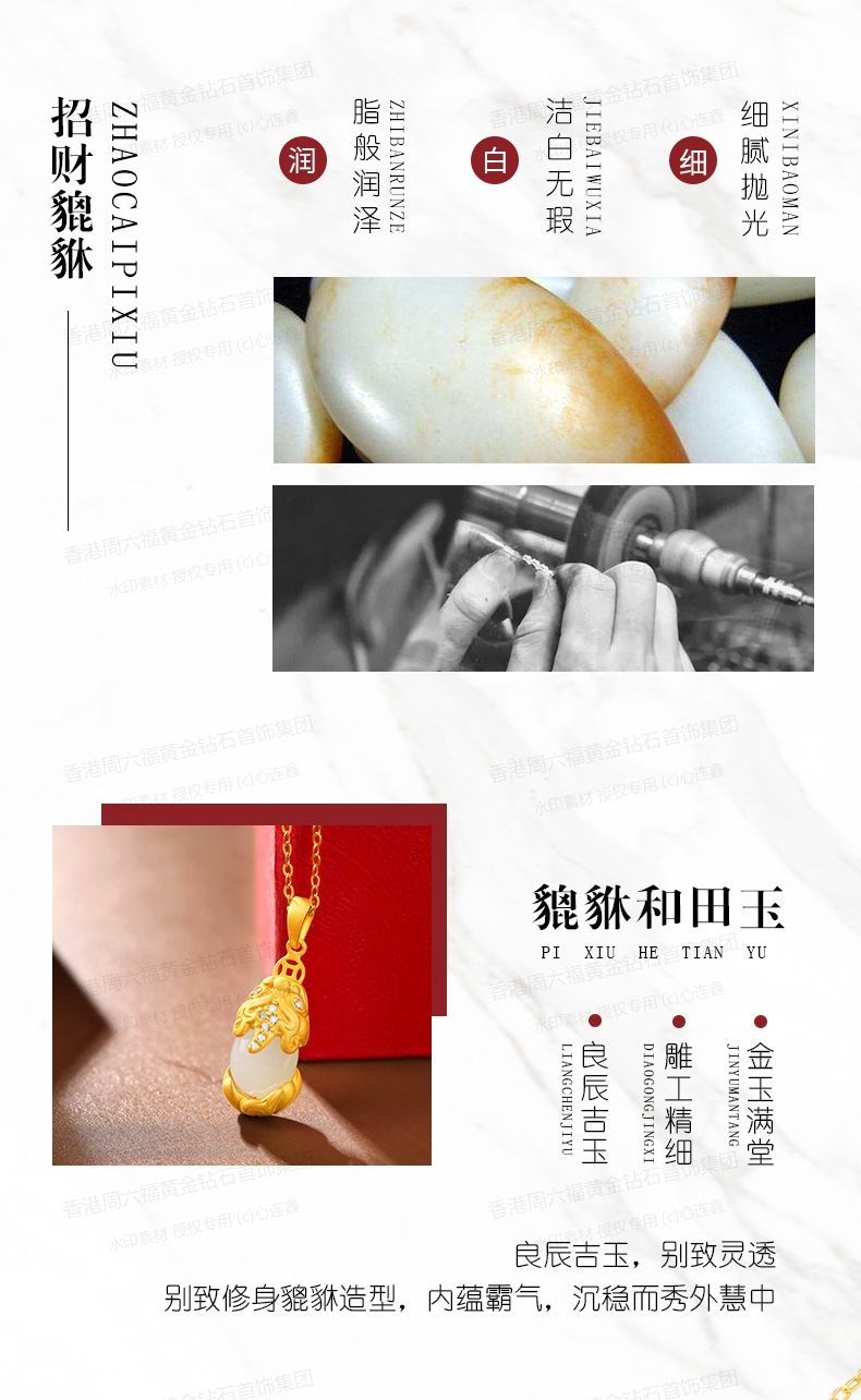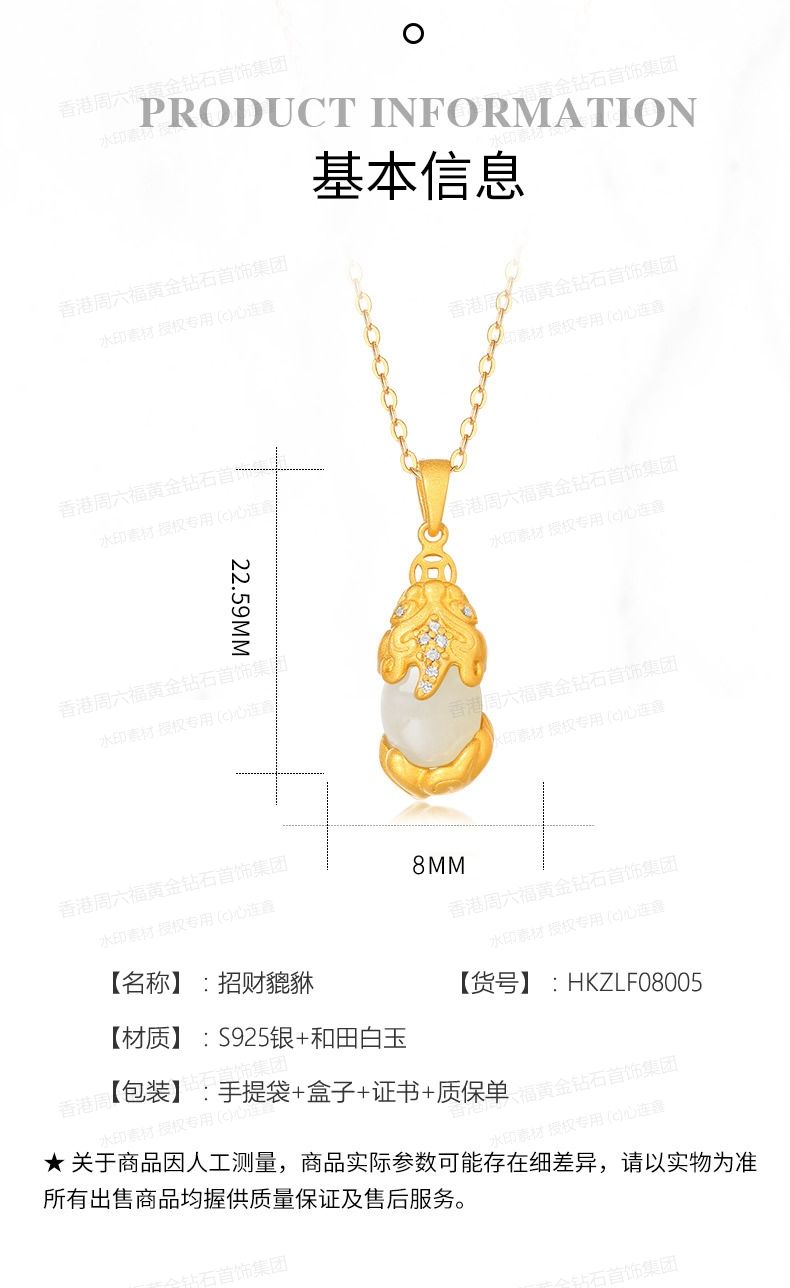 商品名称:香港周六福黄金钻石首饰古法银镶嵌和田玉-招财貔貅