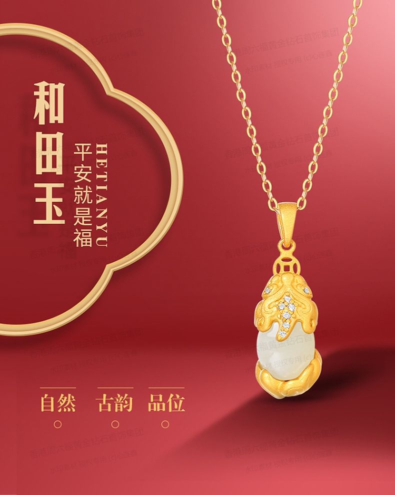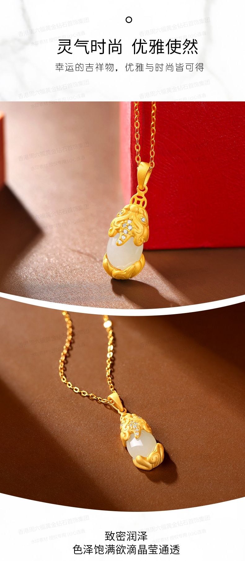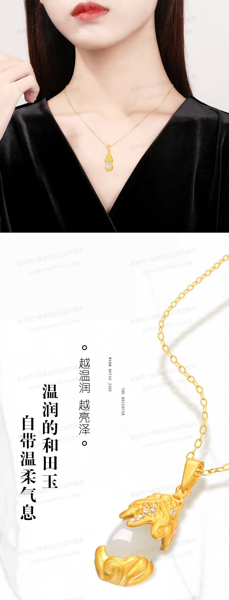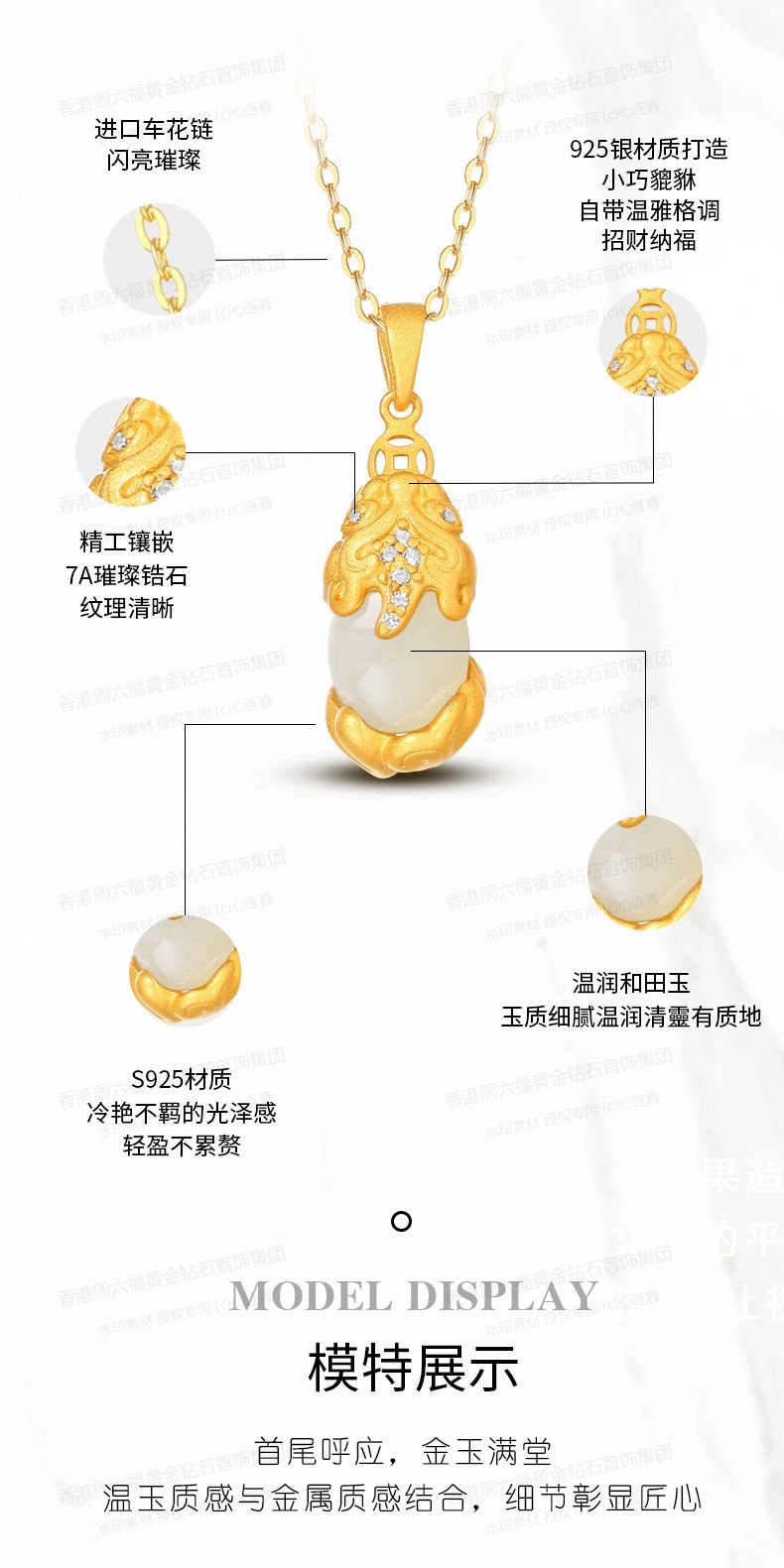 商品名称:香港周六福黄金钻石首饰古法银镶嵌和田玉-招财貔貅