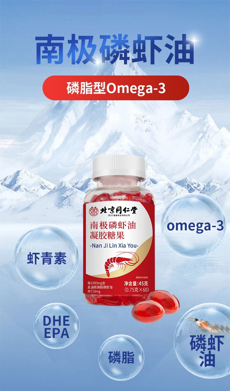 北京同仁堂南极深海磷虾油凝胶糖果鱼油纯正中老年虾青