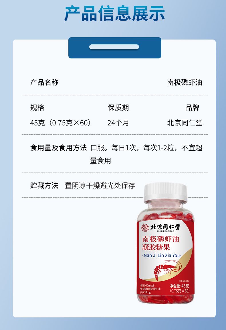 商品名称:北京同仁堂南极深海磷虾油凝胶糖果鱼油纯正中老年虾青