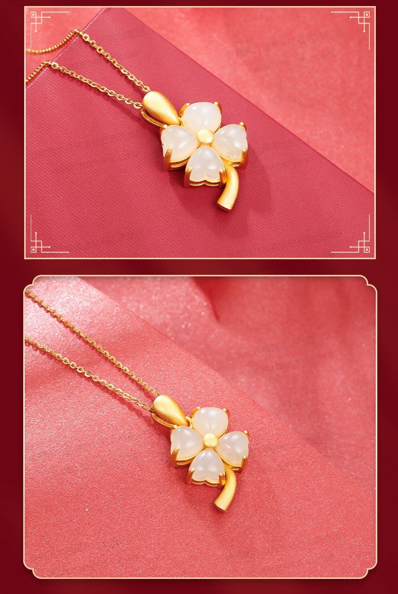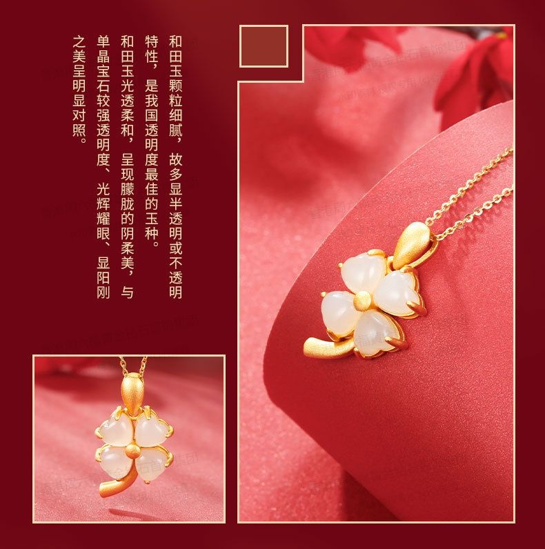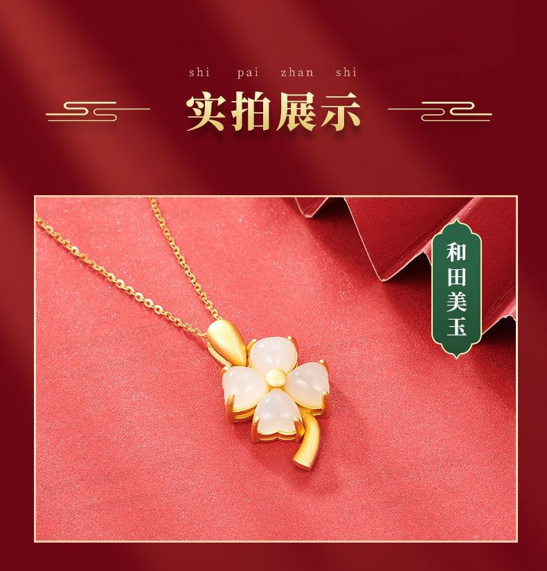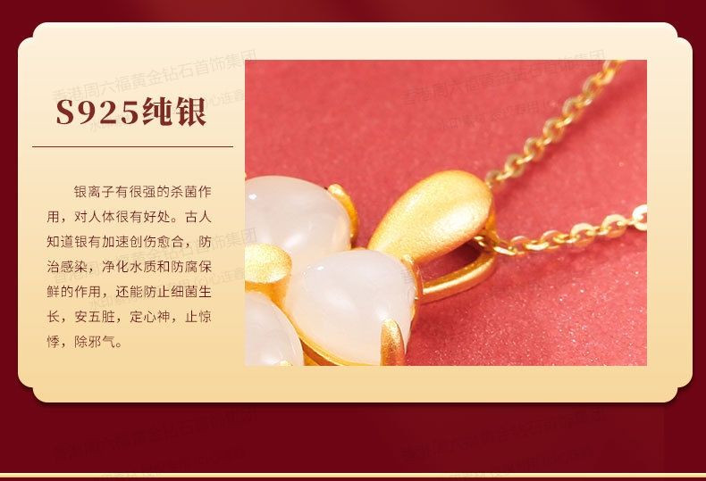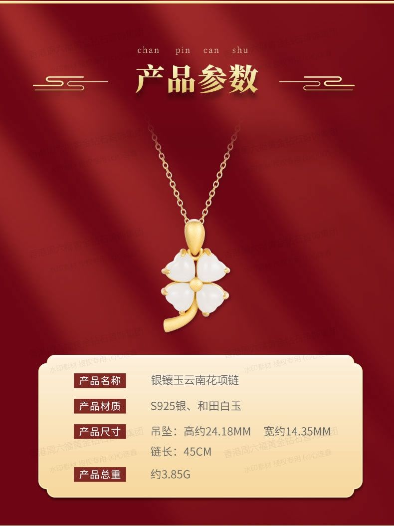 商品名称:香港周六福黄金钻石首饰古法银镶嵌和田玉-云南花