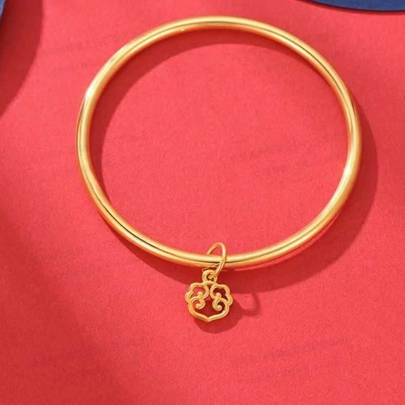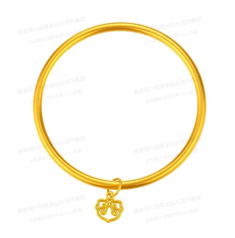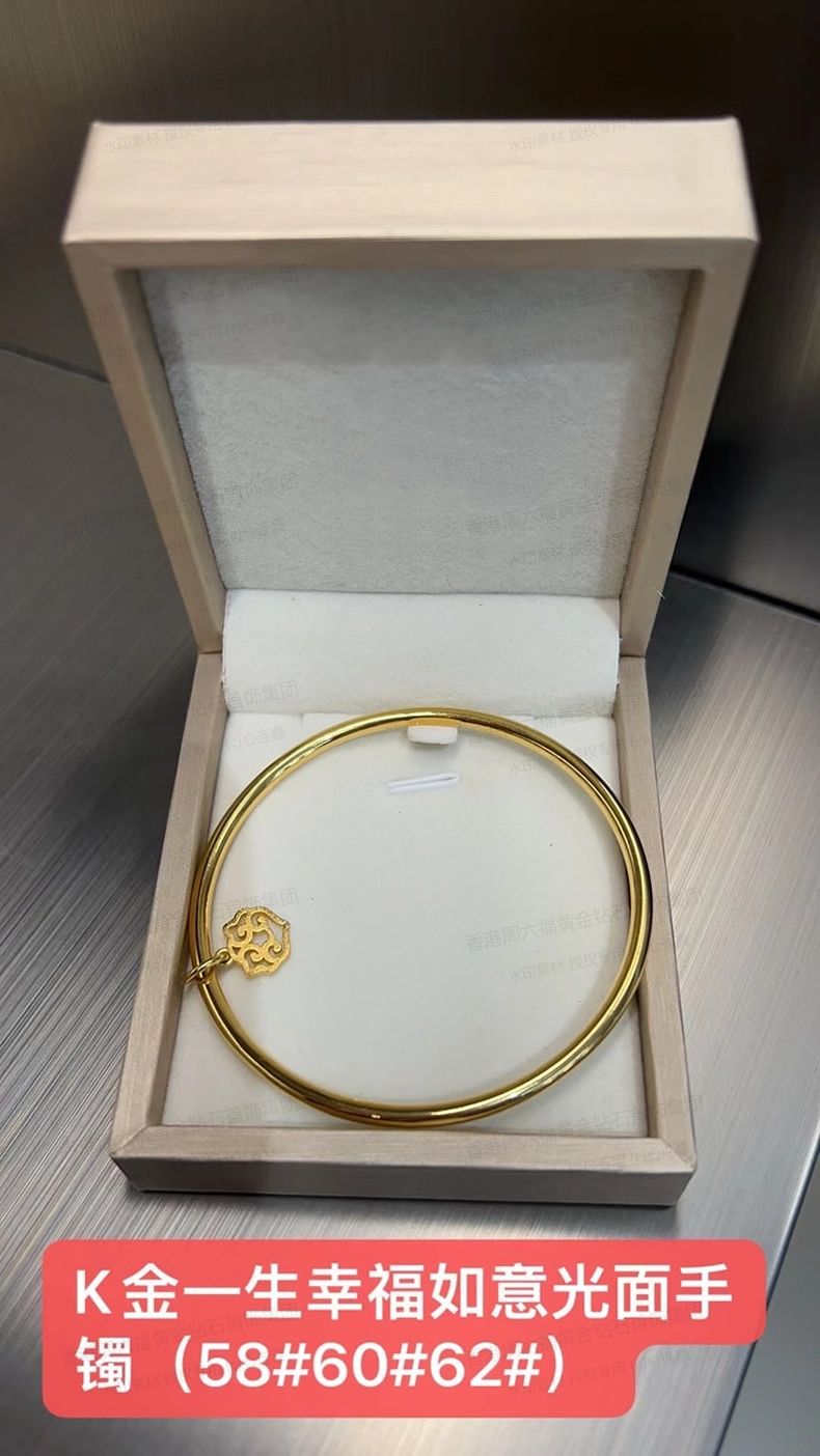 商品名称:香港周六福黄金钻石首饰K金一生幸福如意光面手镯