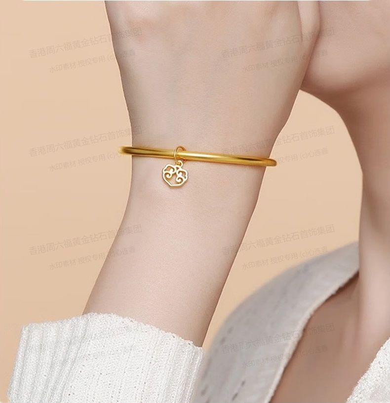 香港周六福黄金钻石首饰K金一生幸福如意光面手镯
