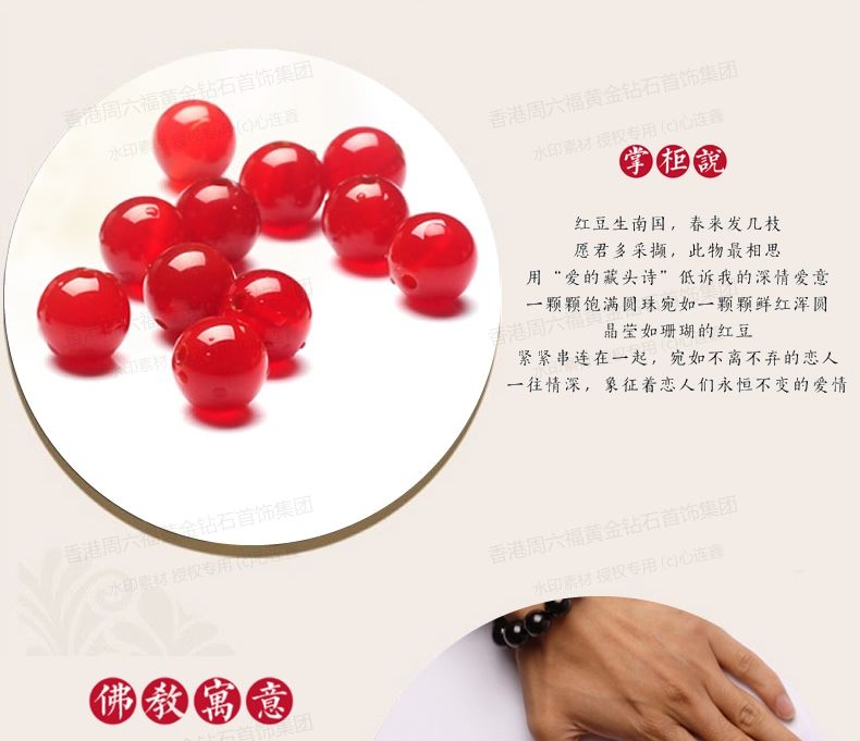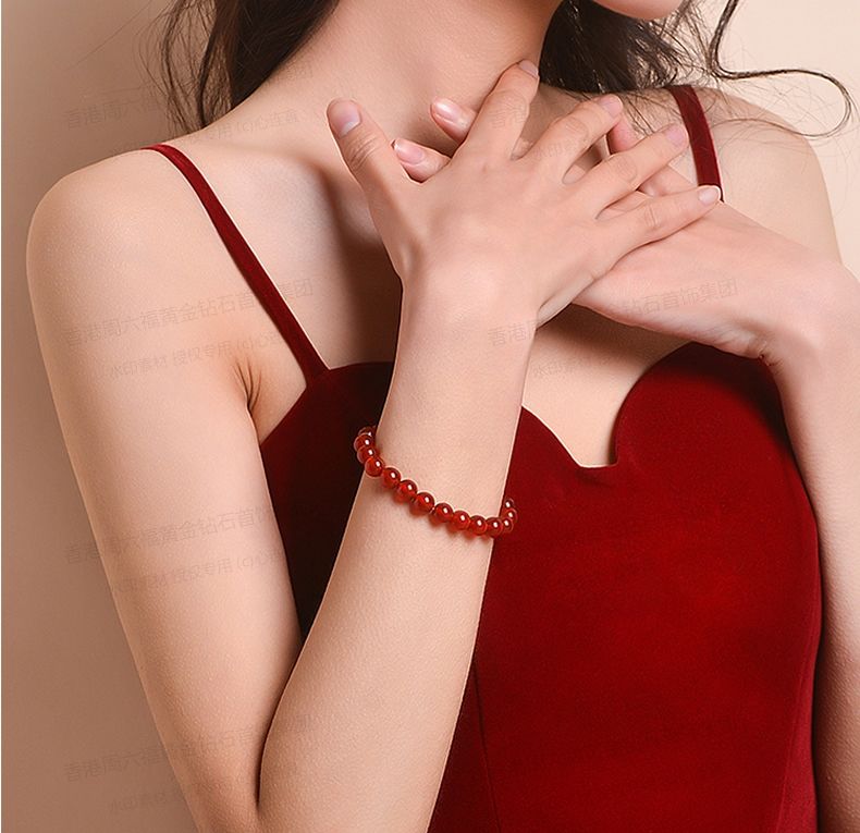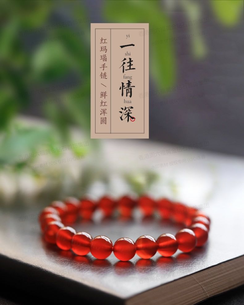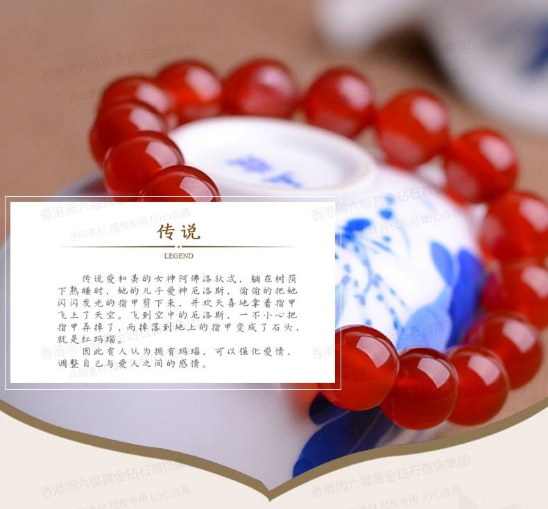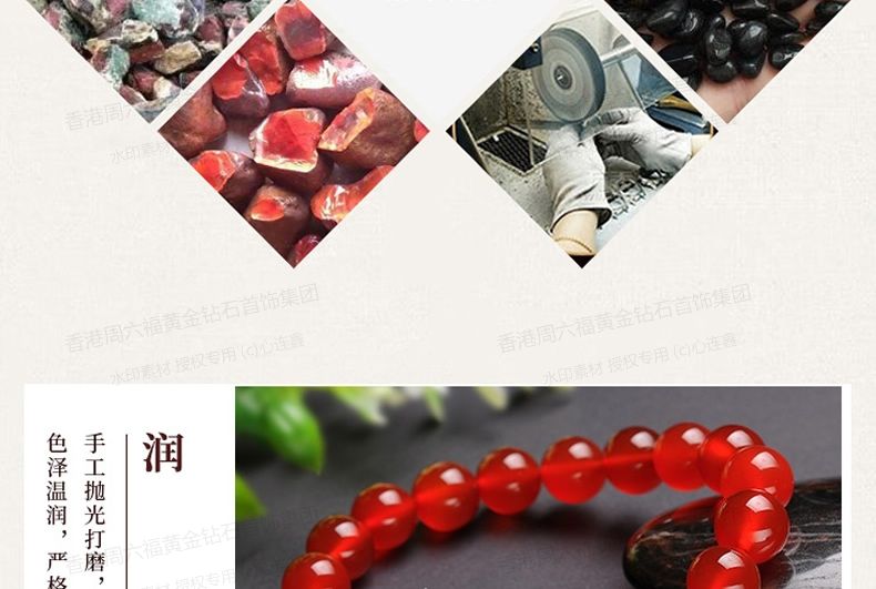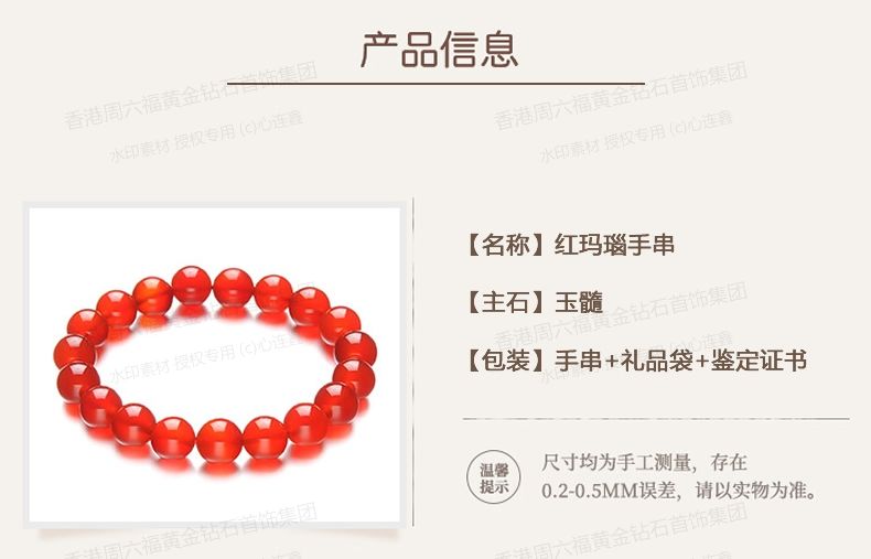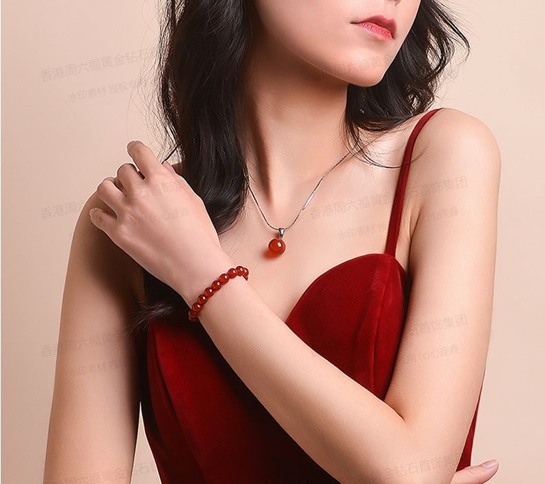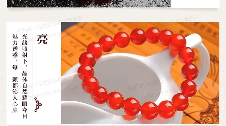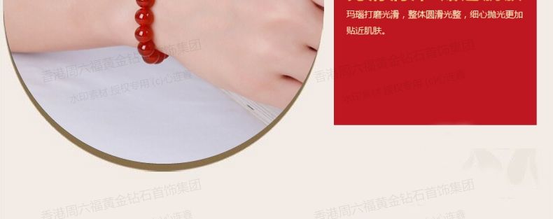 商品名称:香港周六福黄金钻石首饰天然A级红玛瑙手链