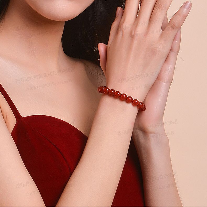 香港周六福黄金钻石首饰天然A级红玛瑙手链
