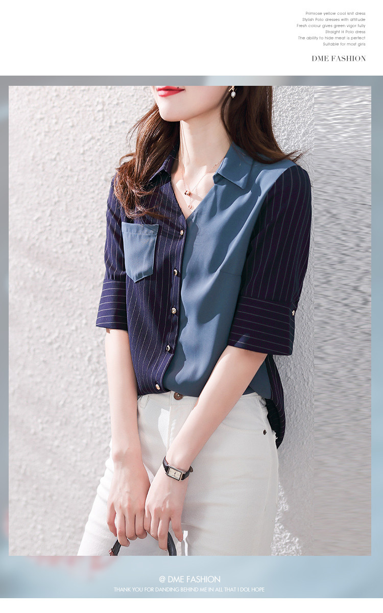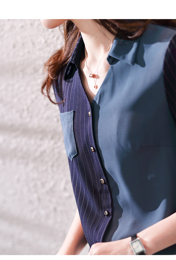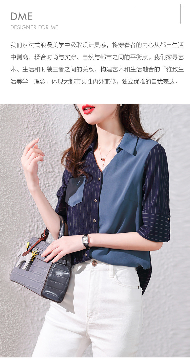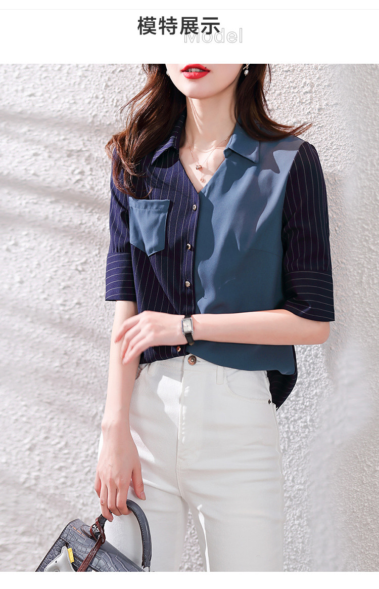 春时尚拼接休闲女式衬衫显瘦H型女式上衣V领气质衬衣女 131841