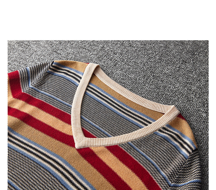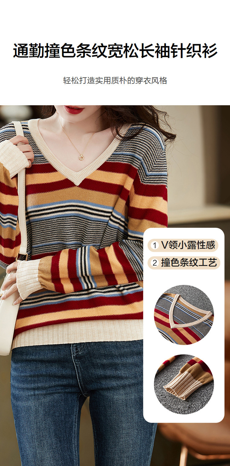 商品名称:【撞色条纹针织衫】春秋季通勤V领宽松长袖简约毛衣女 173569