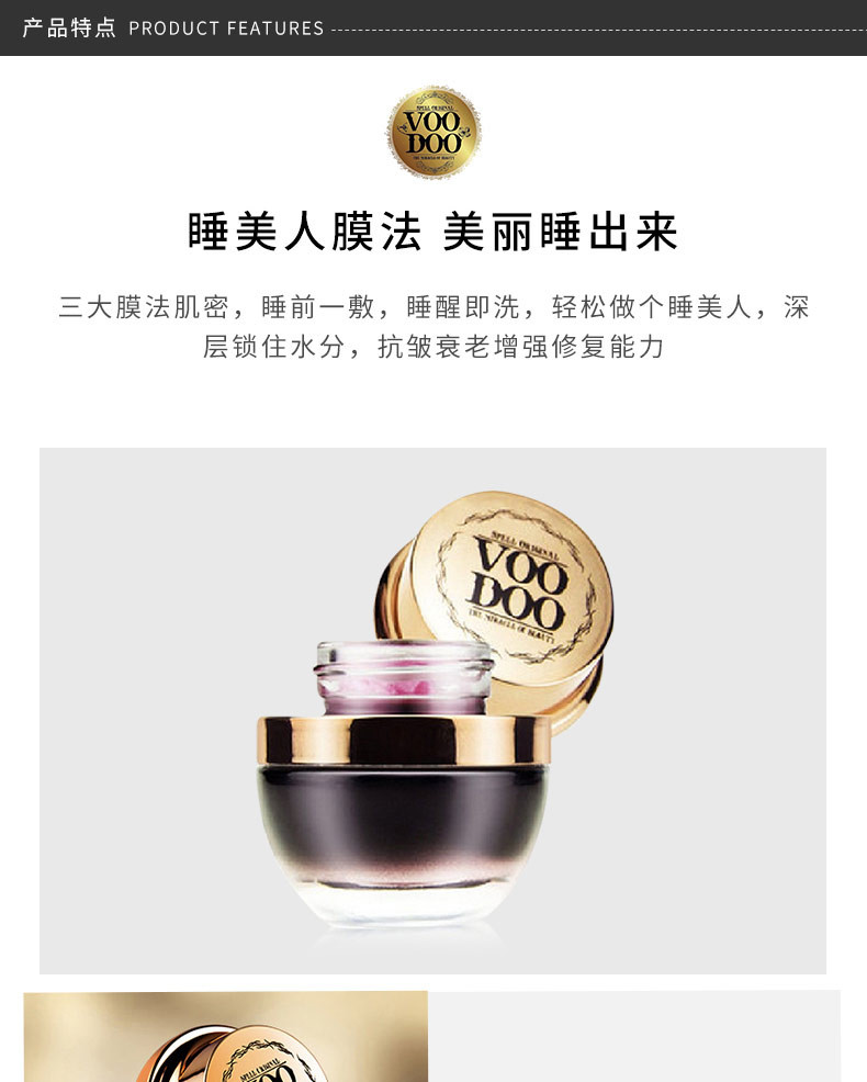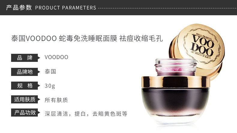 商品名称:VOODOO 蛇毒免洗睡眠面膜 收缩毛孔 30G