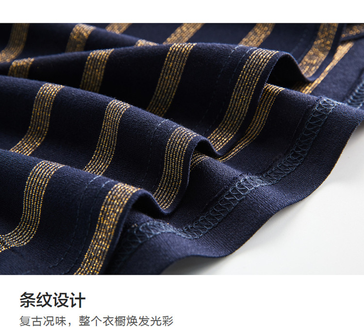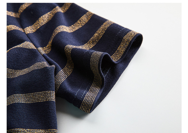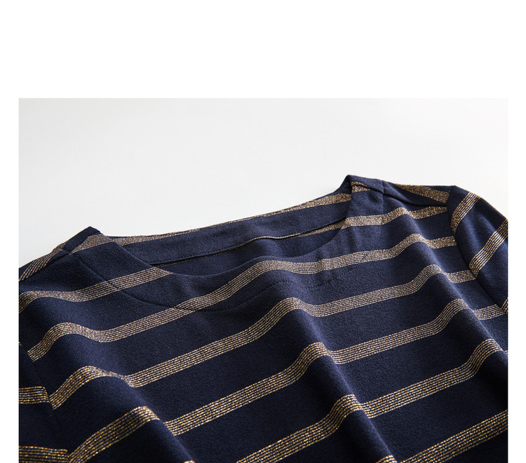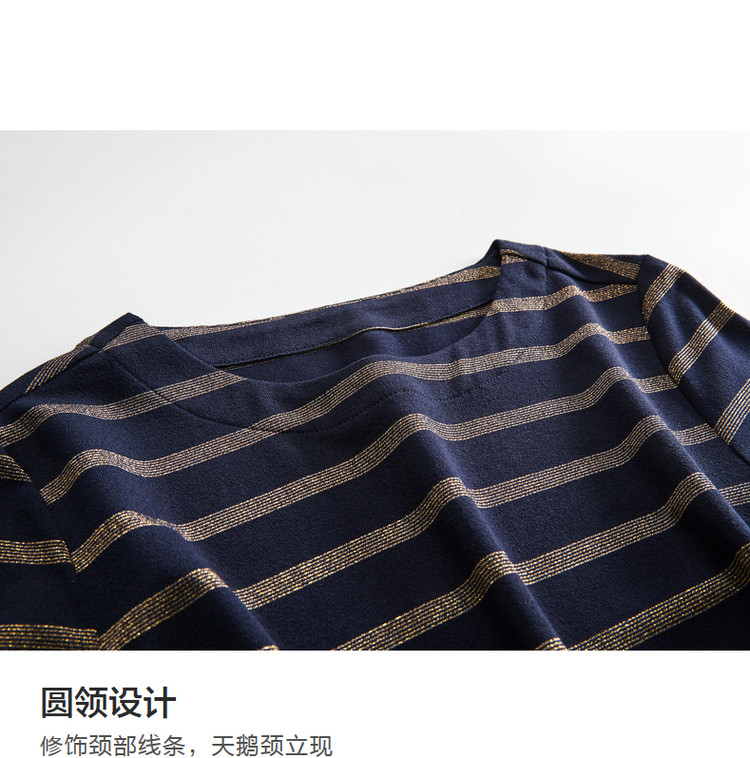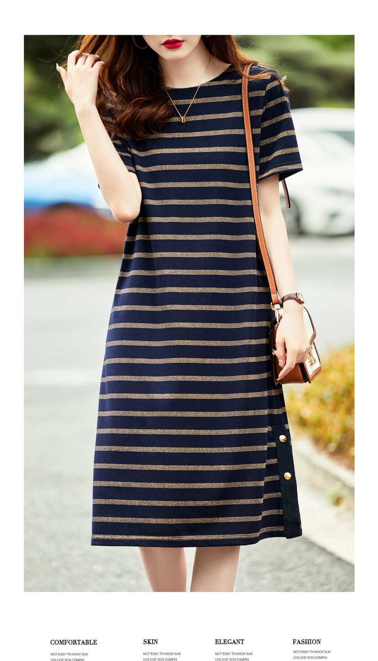 【条纹针织】春秋圆领宽松直筒短袖H型连衣裙女中长款 617281