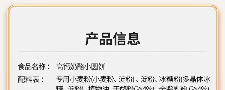 商品名称:秋田满满 高钙奶酪小圆饼 60g
