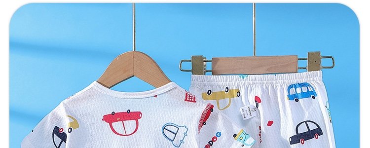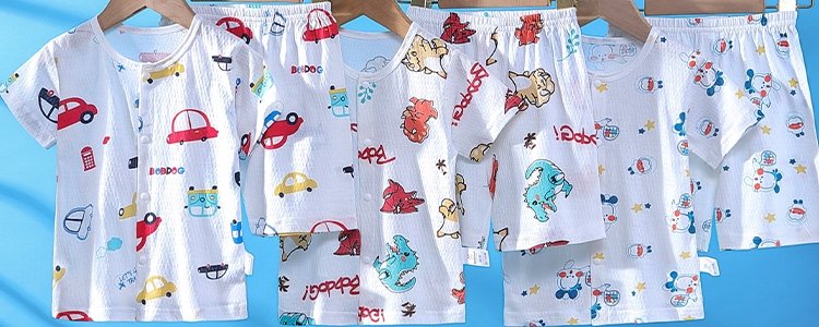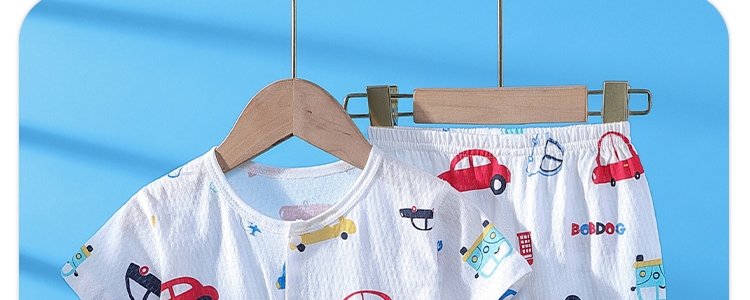 商品名称:巴布豆 全棉短袖中开套装 小狗蓝 110码