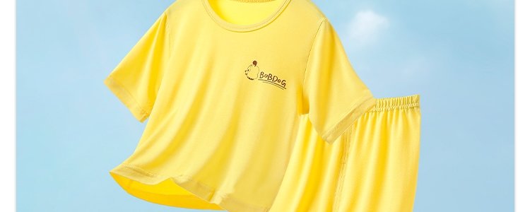 巴布豆 中袖7分裤套装 黄色 120码