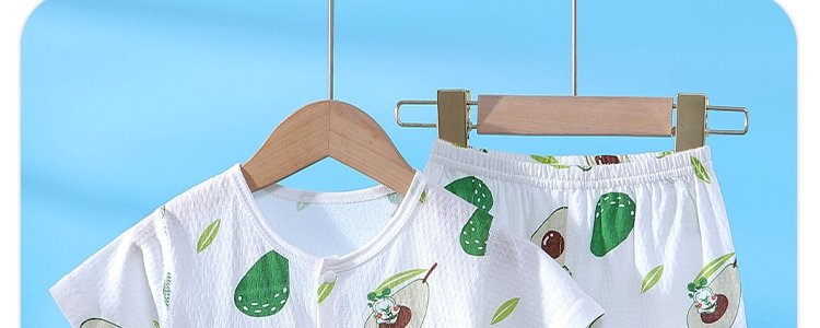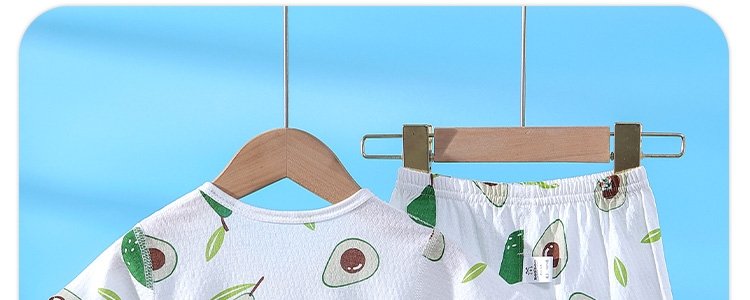 商品名称:巴布豆 全棉短袖中开套装 牛油果 90码