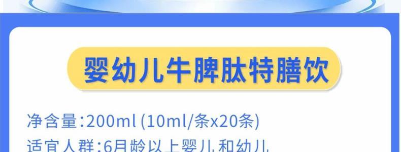 商品名称:加贝爱他 婴幼儿牛脾肽特膳饮 200ml(10ml*20条)