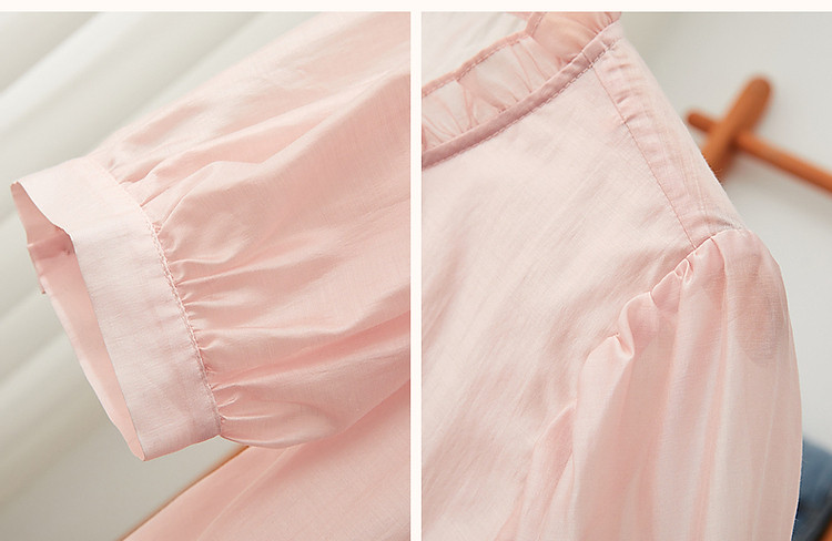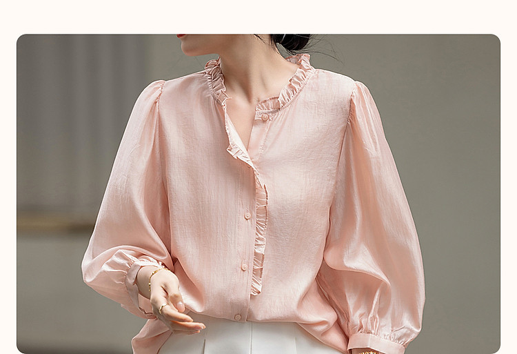 商品名称:【珠光感莱赛尔】春秋法式圆领泡泡袖木耳边衬衫小个子衬衣女上衣 959041