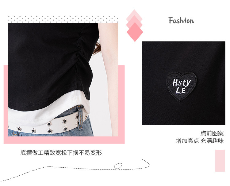 商品名称:假两件抽褶收腰女式t恤夏拼色短袖上衣女修身内搭打底 916363