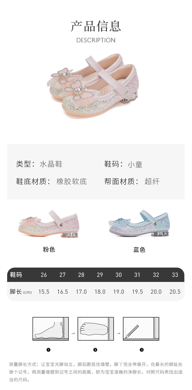 商品名称:春夏季女童皮鞋春夏软底水晶鞋儿童演出时装鞋甜美时尚闪亮公主鞋 021975