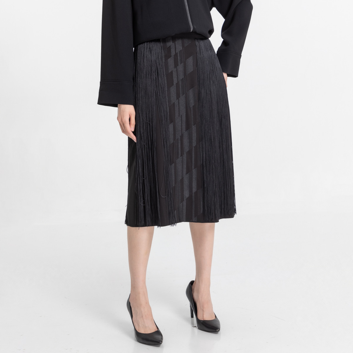 宝姿飘逸长流苏半裙LM8S032KWB036 397514