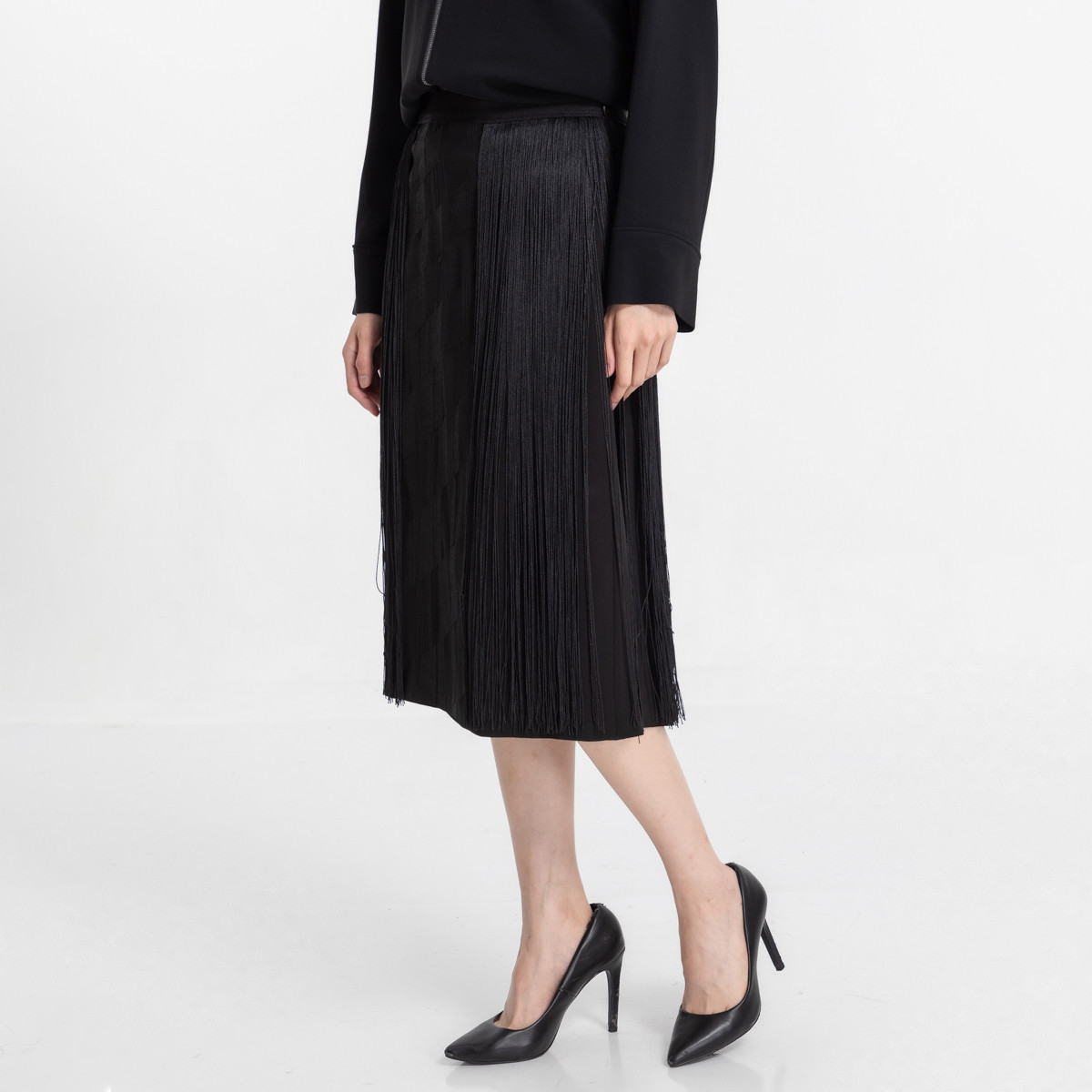 商品名称:宝姿飘逸长流苏半裙LM8S032KWB036 397514