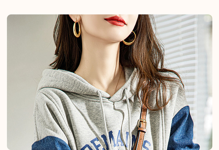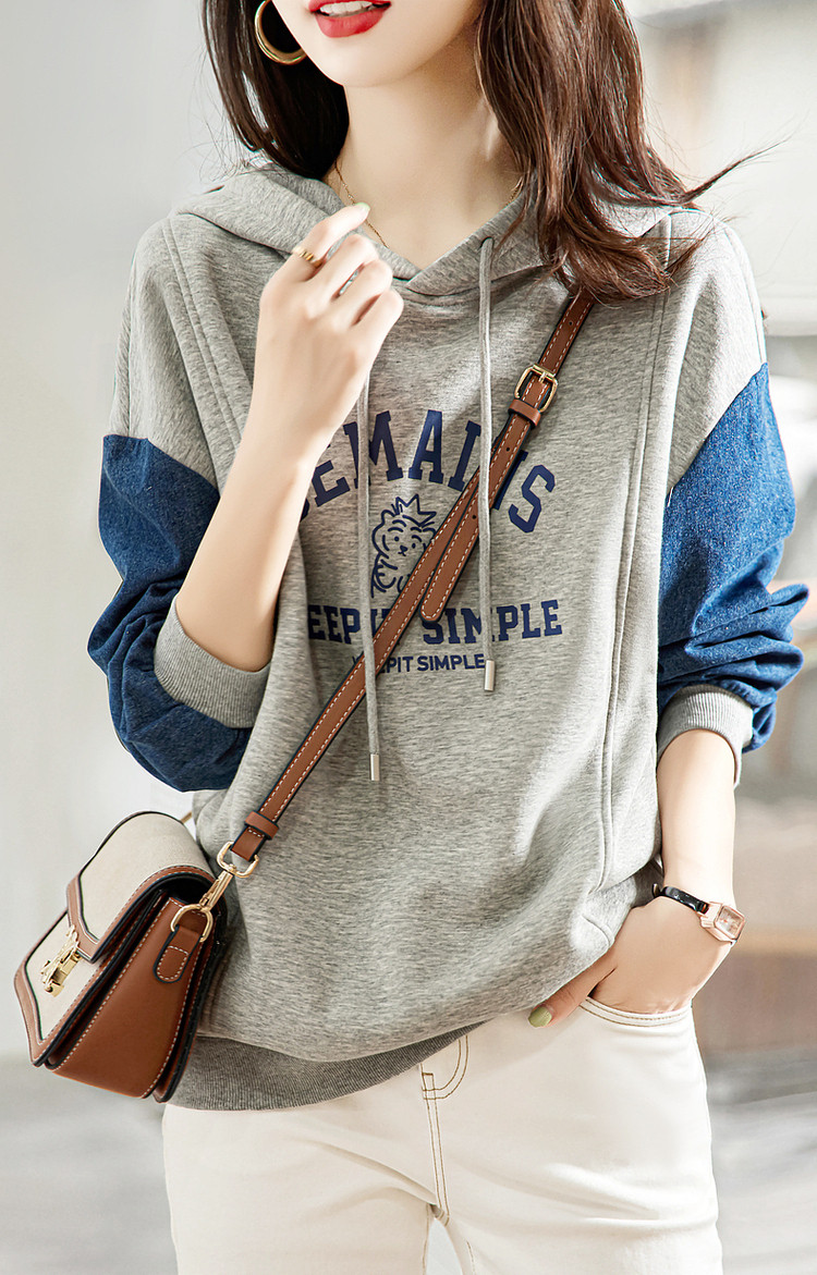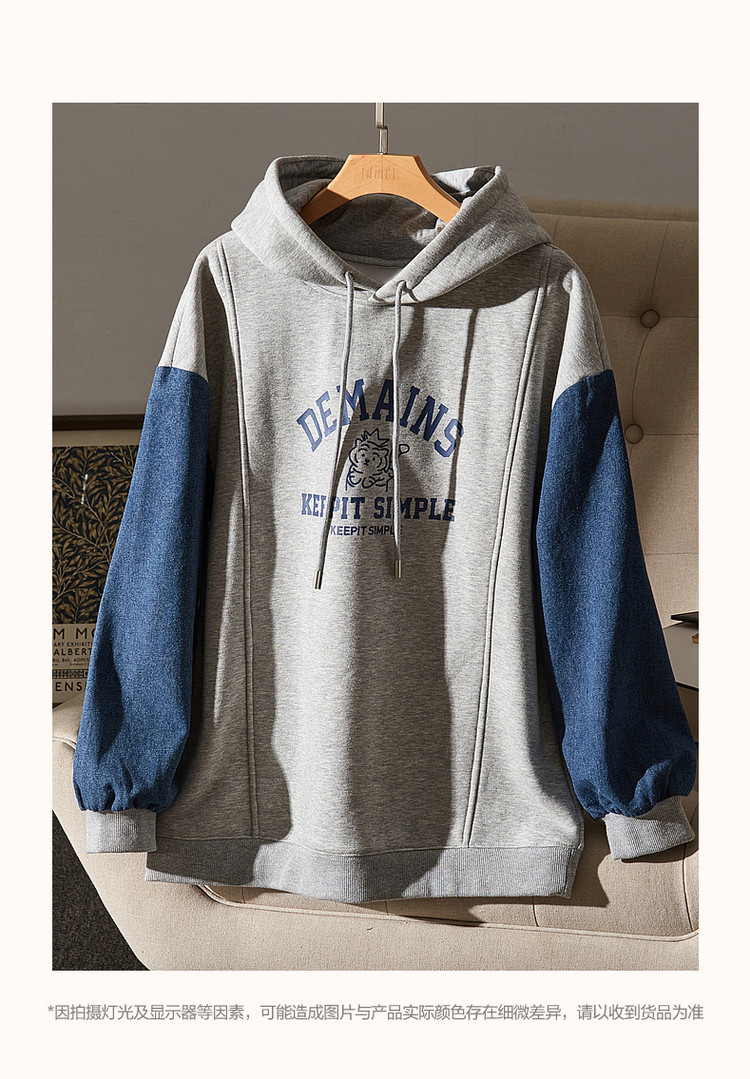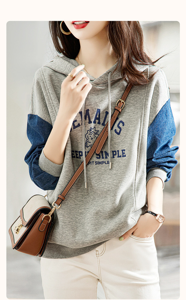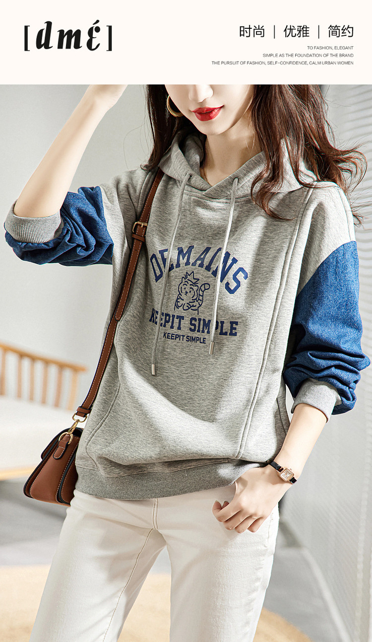 商品名称:【字母印花卫衣】秋季通勤连帽落肩印花长袖微弹宽松卫衣女 124097