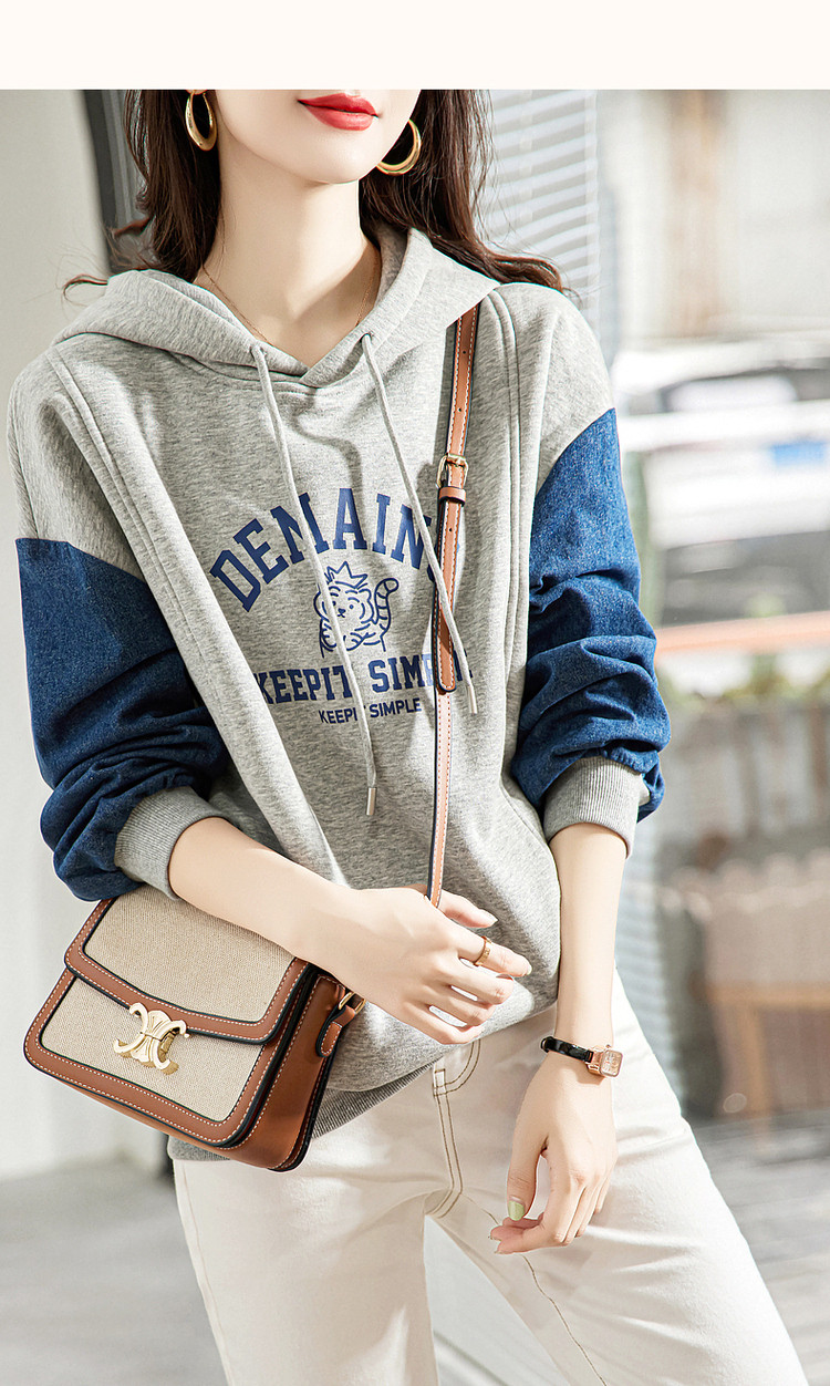【字母印花卫衣】秋季通勤连帽落肩印花长袖微弹宽松卫衣女 124097