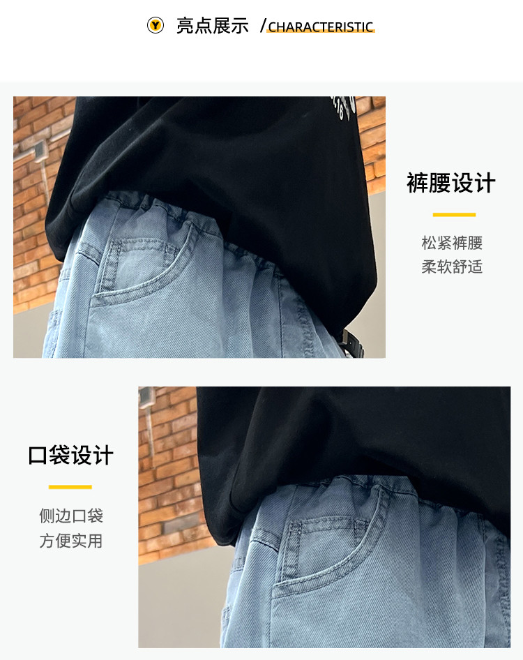 商品名称:童装男童宽松牛仔短裤2024新款夏装儿童牛仔中裤夏季五分裤潮 814607