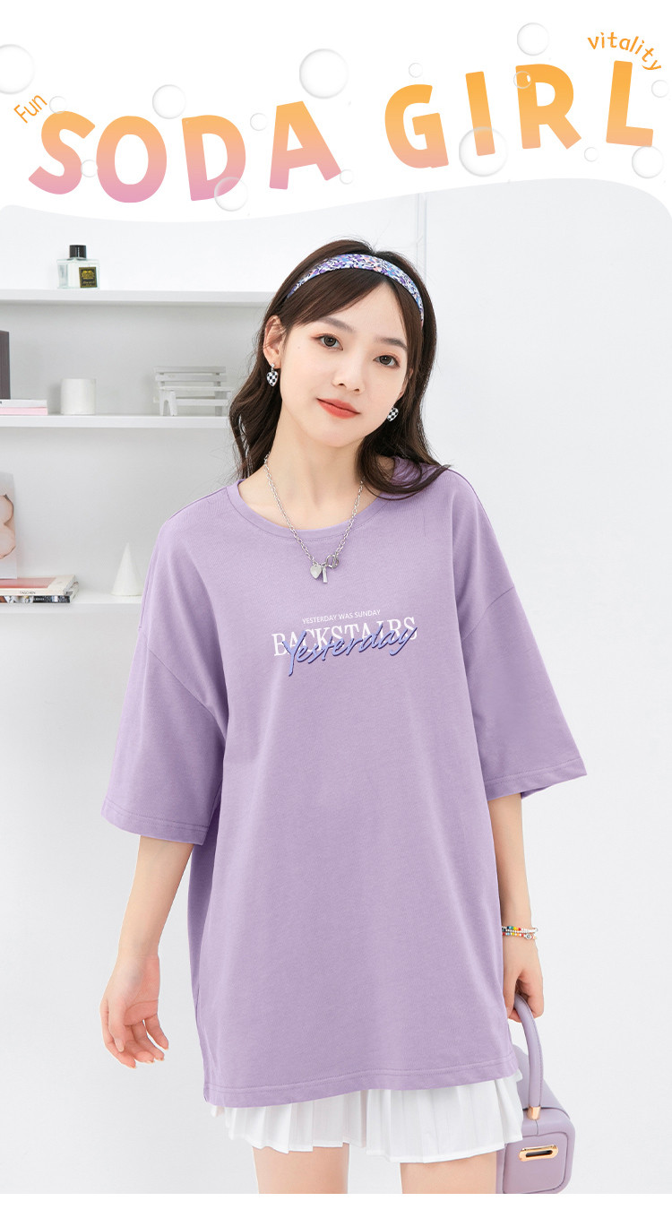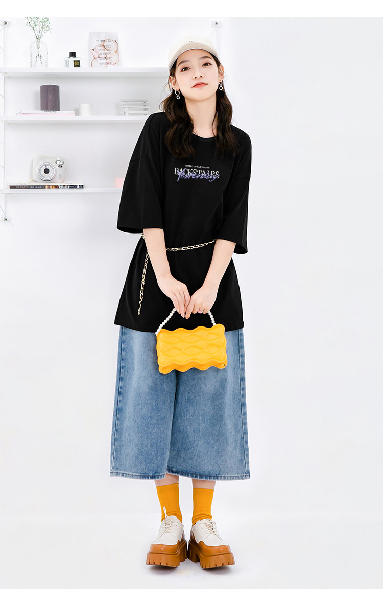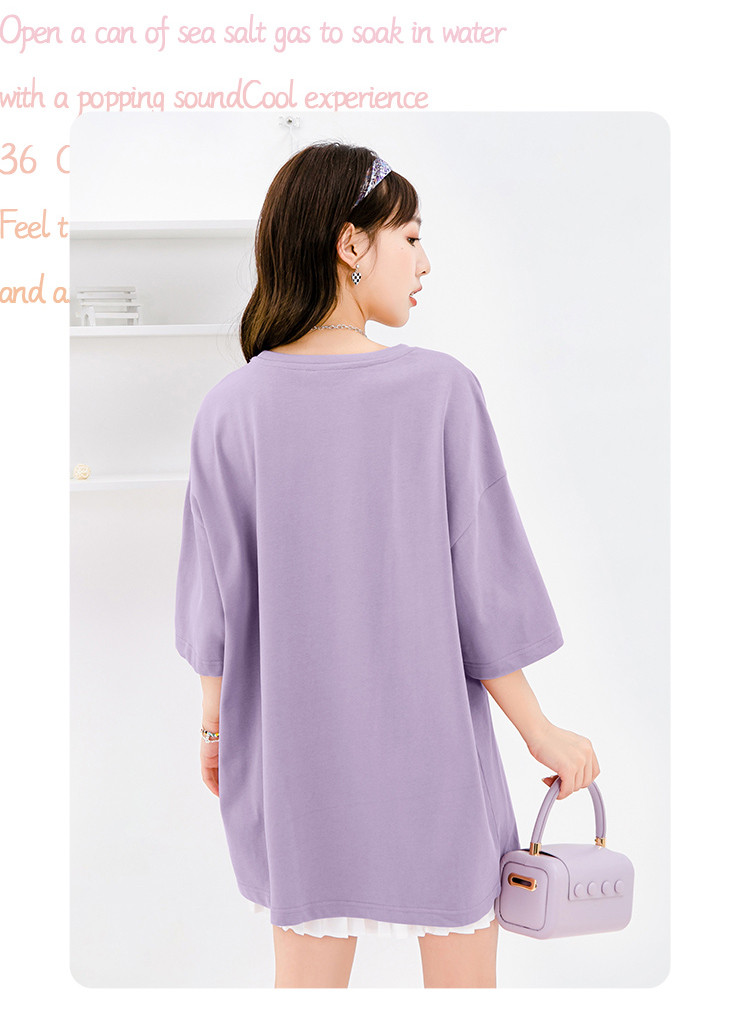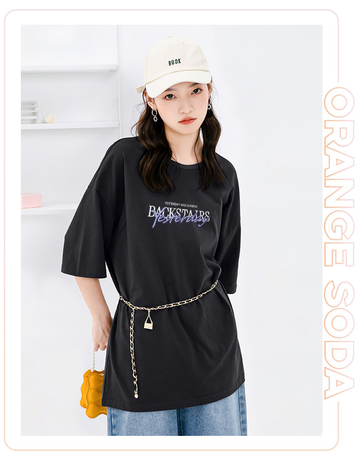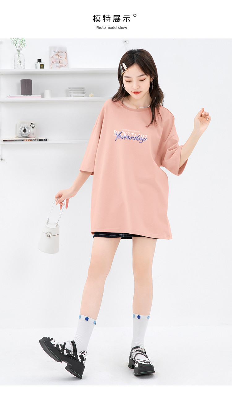 【女装】重磅纯棉短袖女式T恤夏季中长款宽松下衣失踪 662739