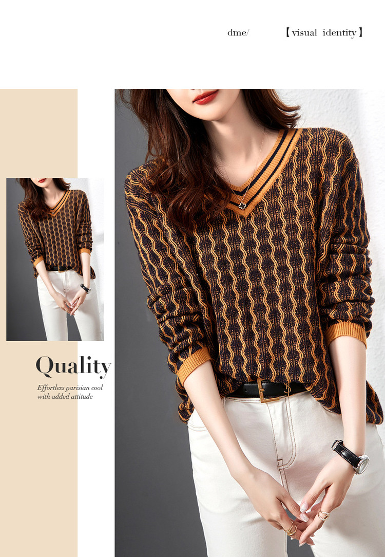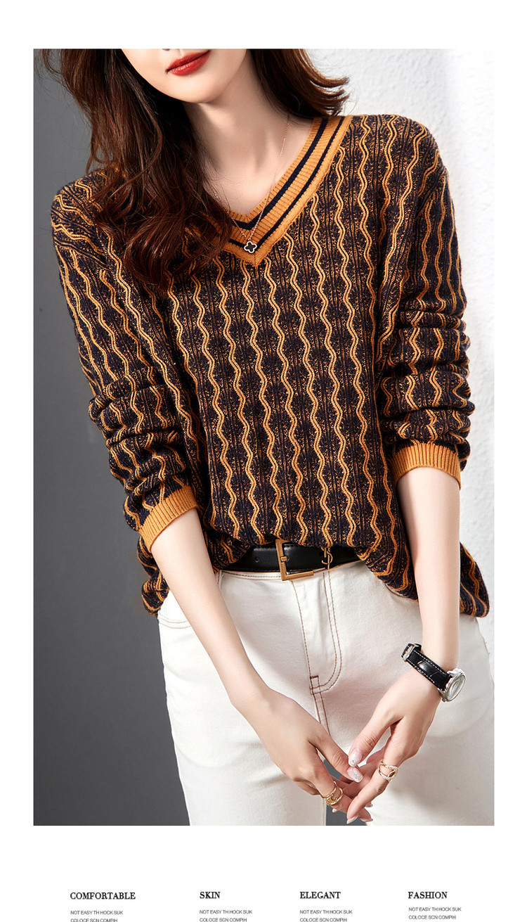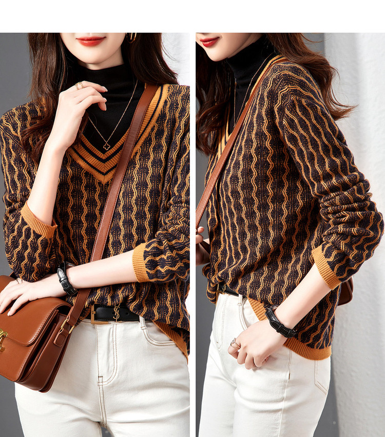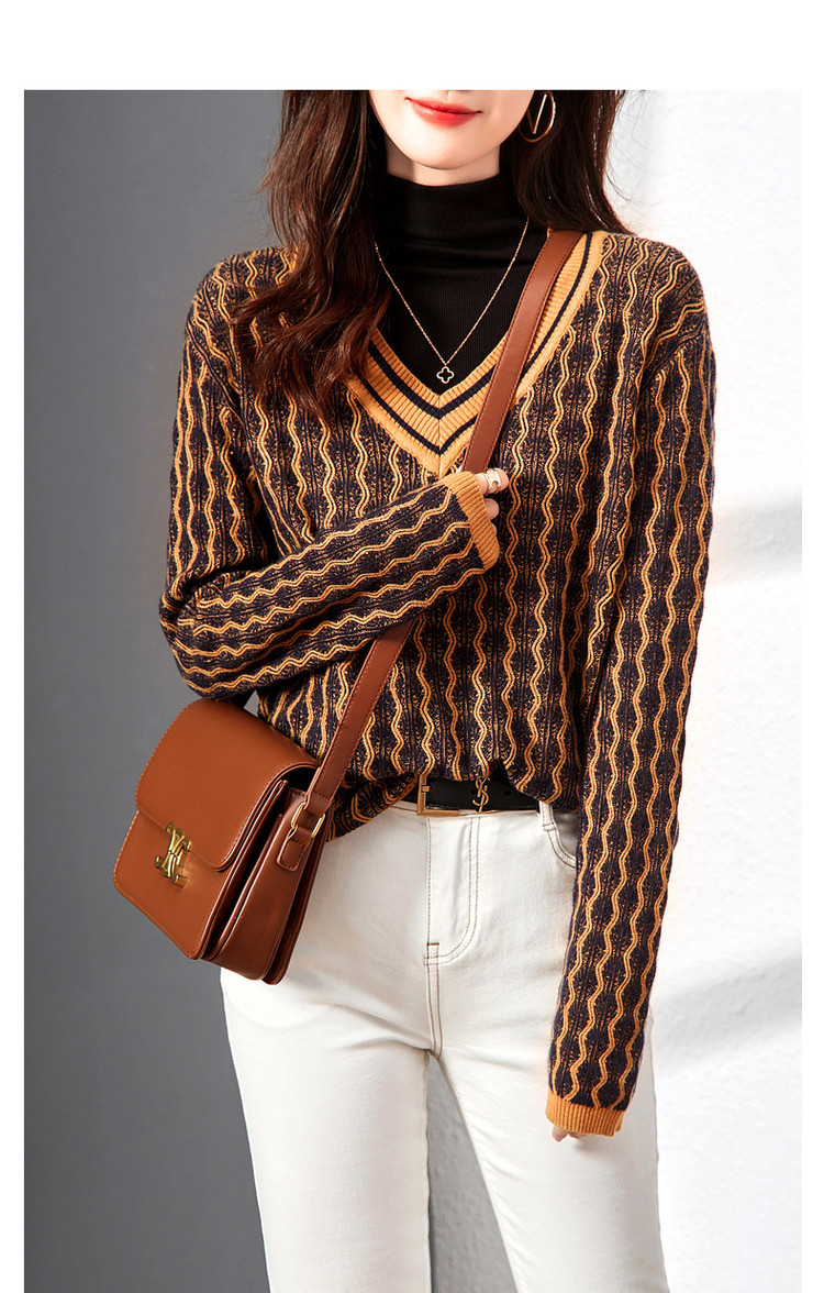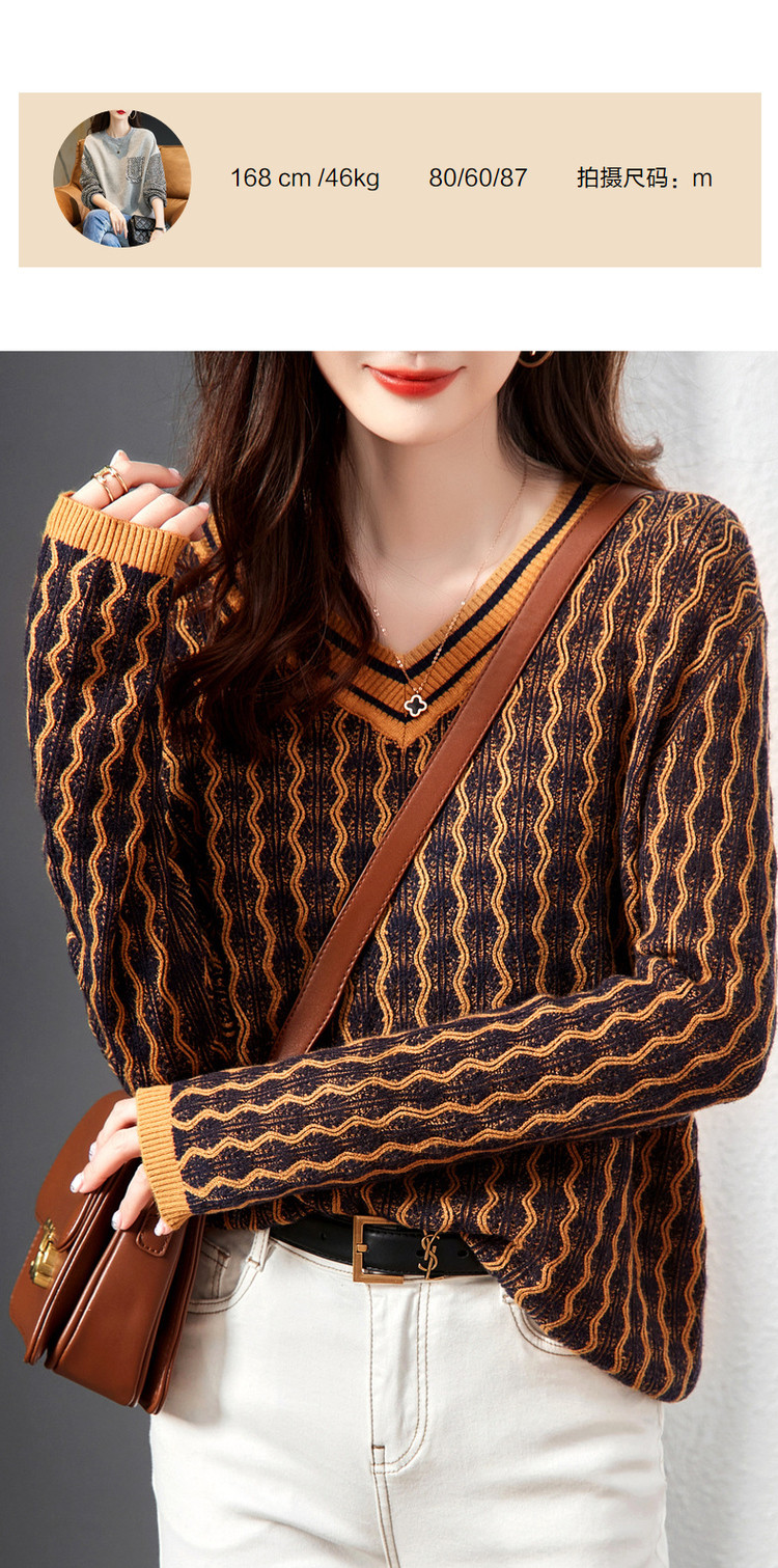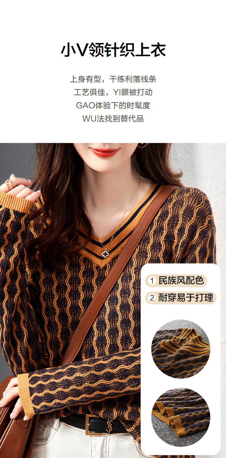 商品名称:【民族风针织上衣】春秋季V领女式针织衫女 376321