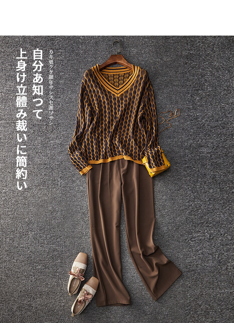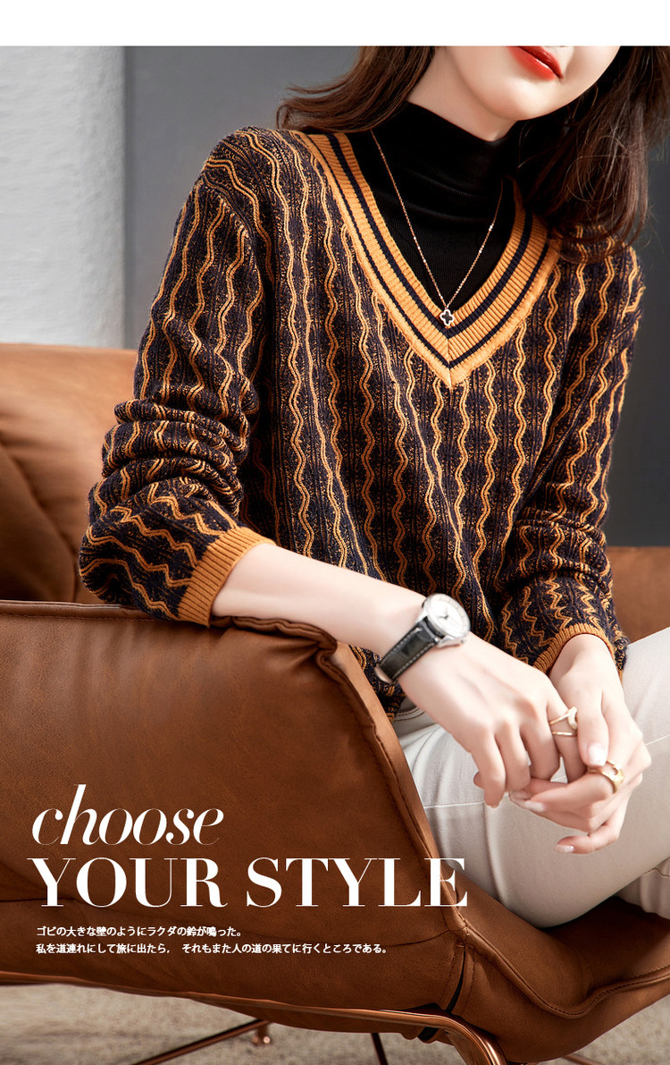 【民族风针织上衣】春秋季V领女式针织衫女 376321