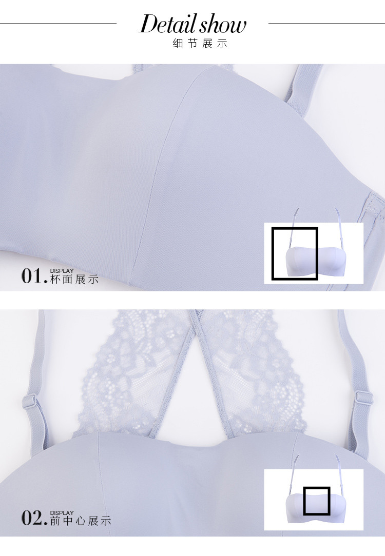 商品名称:【捡漏款】蕾丝聚拢小胸抹胸软钢圈美背防走光中厚文胸罩内衣女 418315