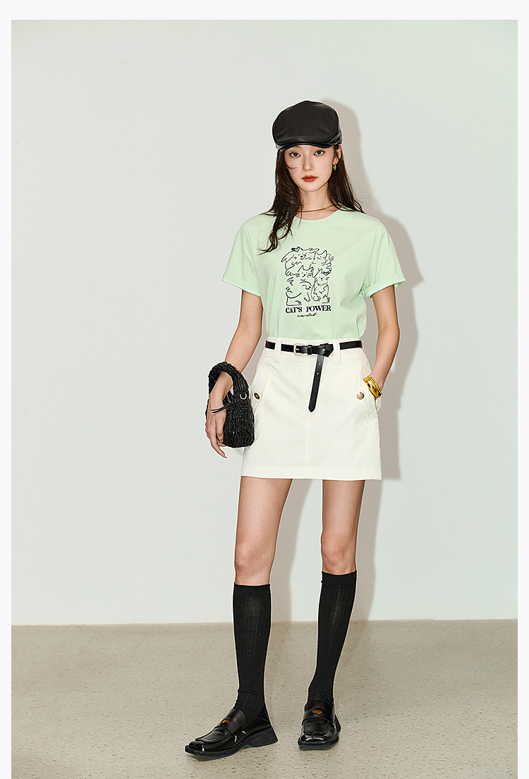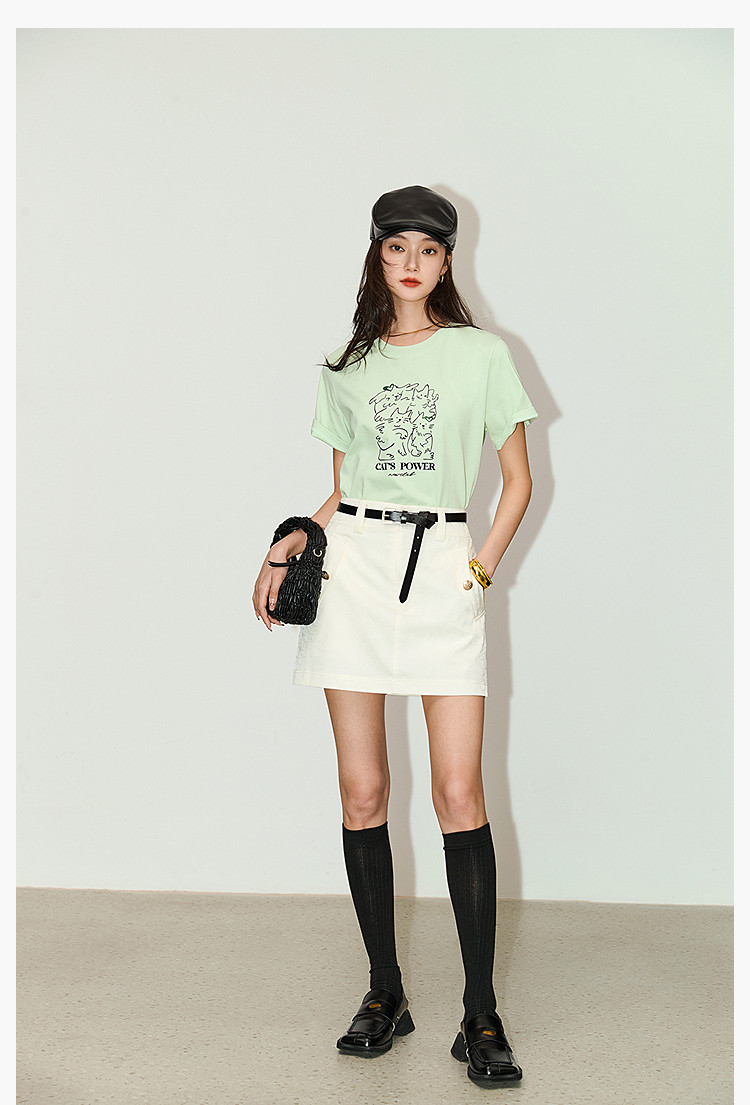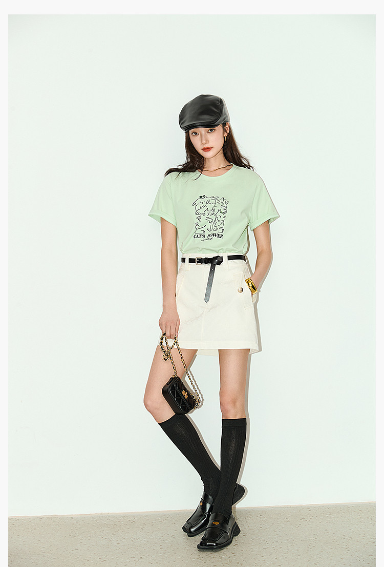 复古时尚通勤百搭别致显瘦高腰A字超短半身裙 233499