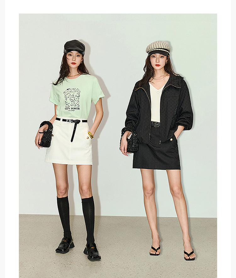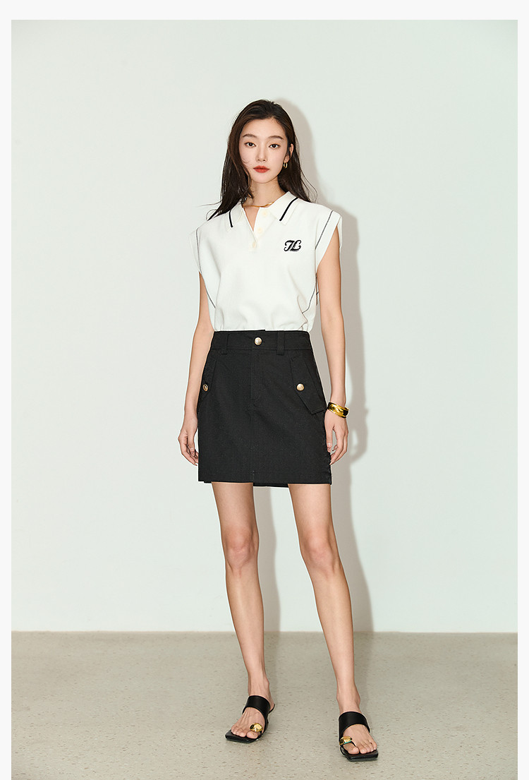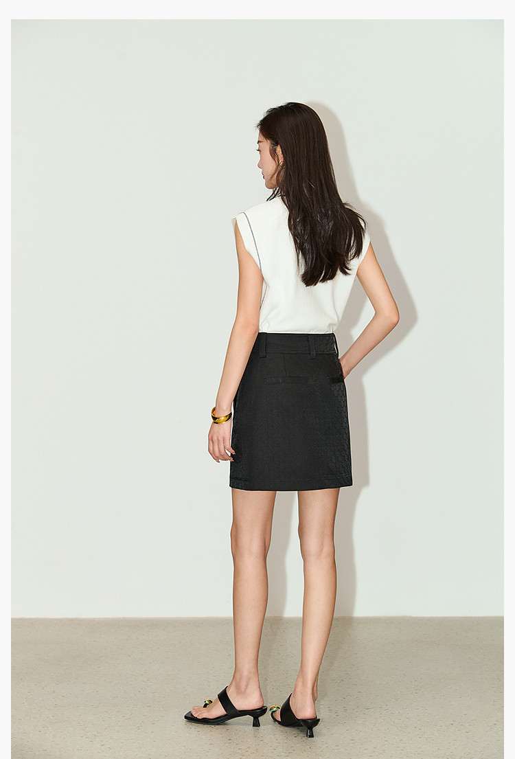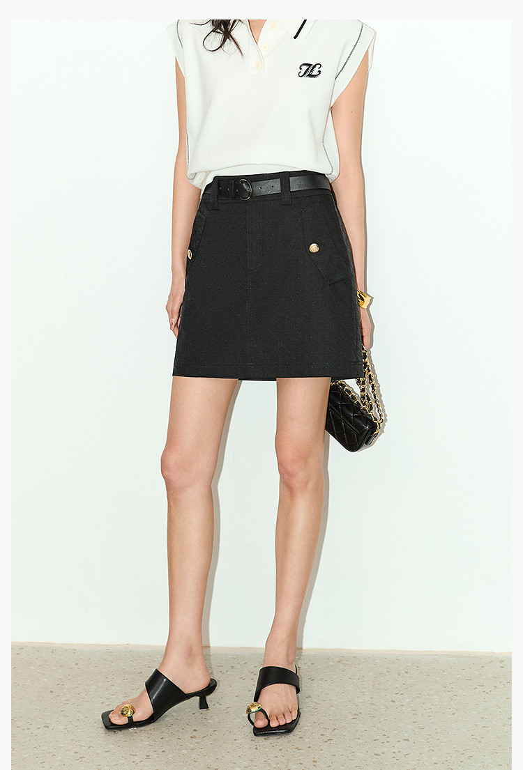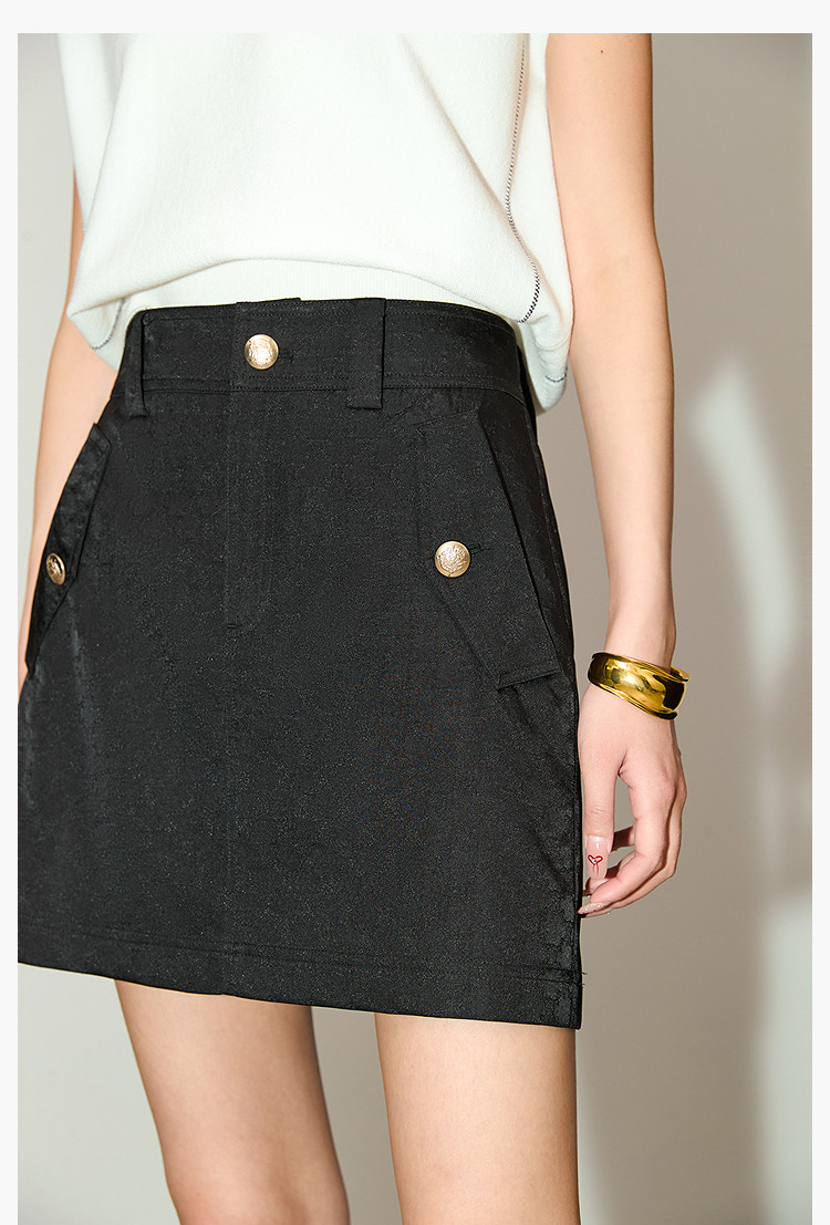 商品名称:复古时尚通勤百搭别致显瘦高腰A字超短半身裙 233499