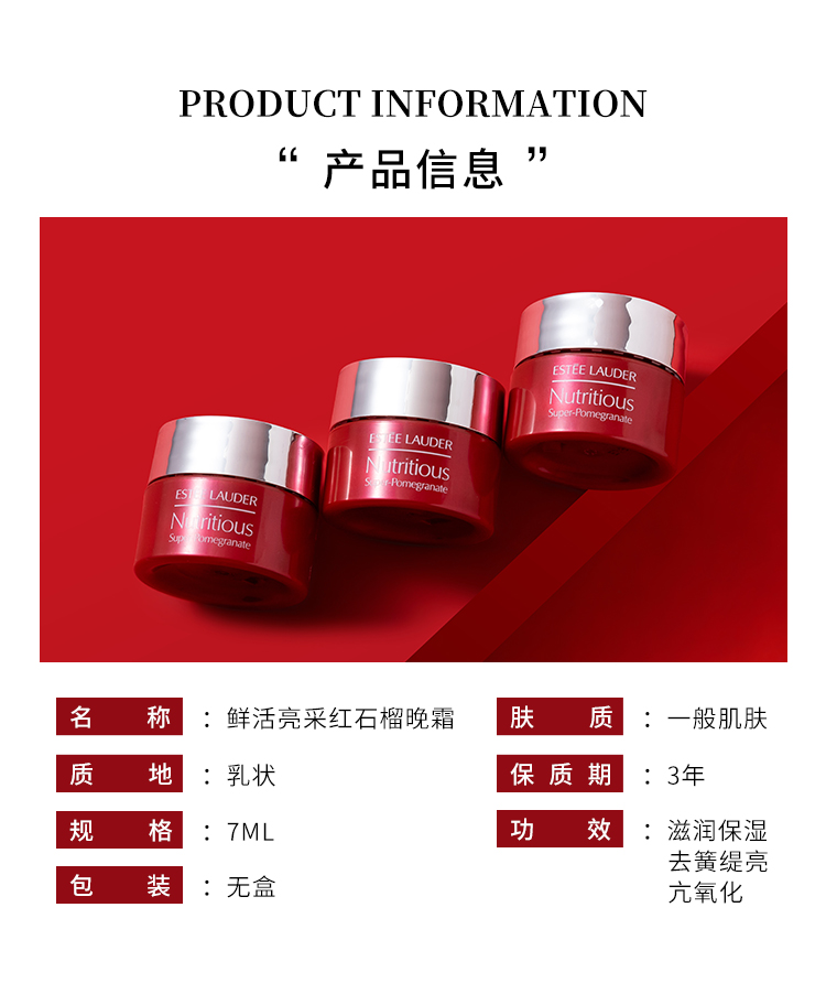 商品名称:Estee Lauder/雅诗兰黛 红石榴晚霜 7ml