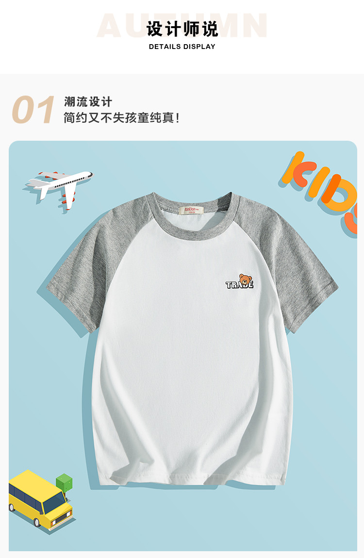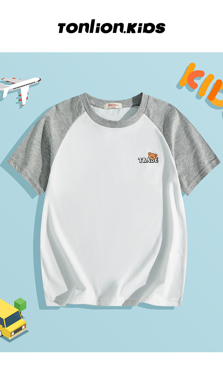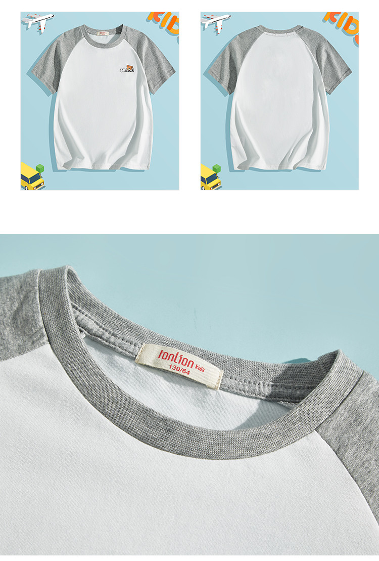 商品名称:男童撞色袖T恤春秋款时尚儿童纯棉短袖衫中大童薄款插肩短袖上衣 533903