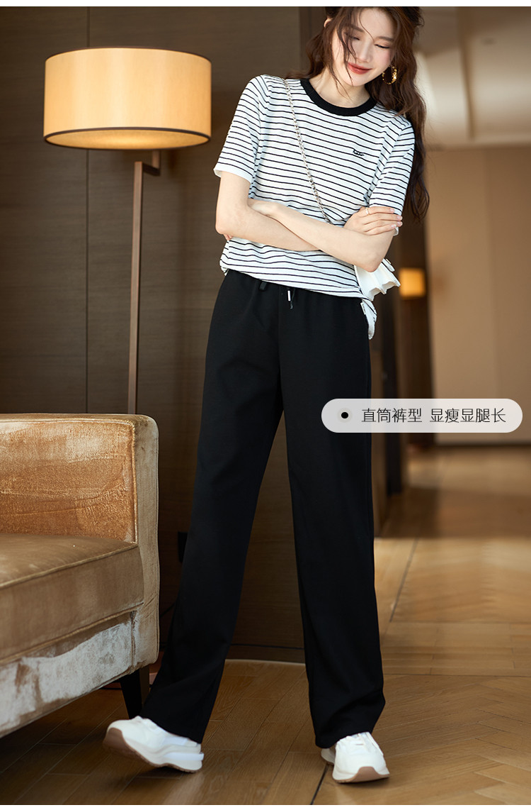 商品名称:轻薄透气长裤2025夏季新款宽松显瘦垂感直筒裤女士休闲裤阔腿裤 108169