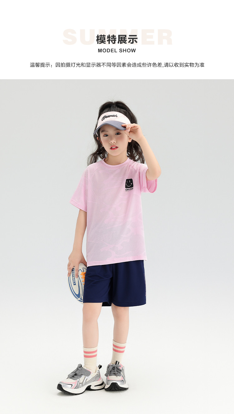 商品名称:女童套装2024夏薄款儿童运动套装中大童短袖短裤两件套 902607