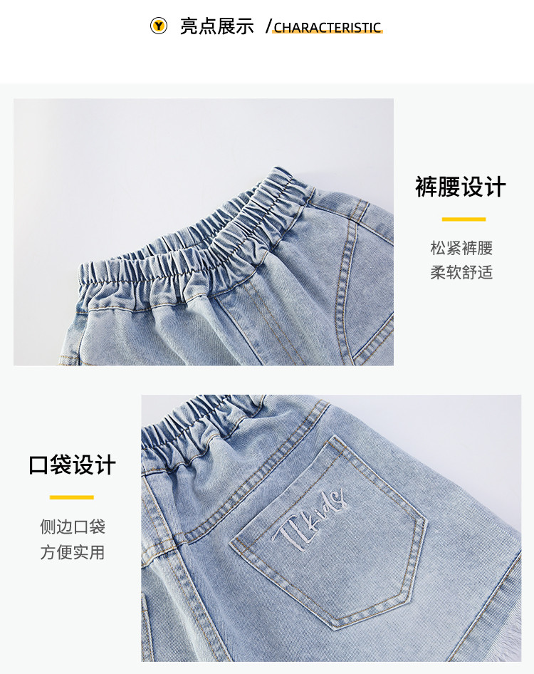 商品名称:女童裤子牛仔短裤2024夏薄百搭短裤女孩子牛仔轻薄儿童短裤潮 895439