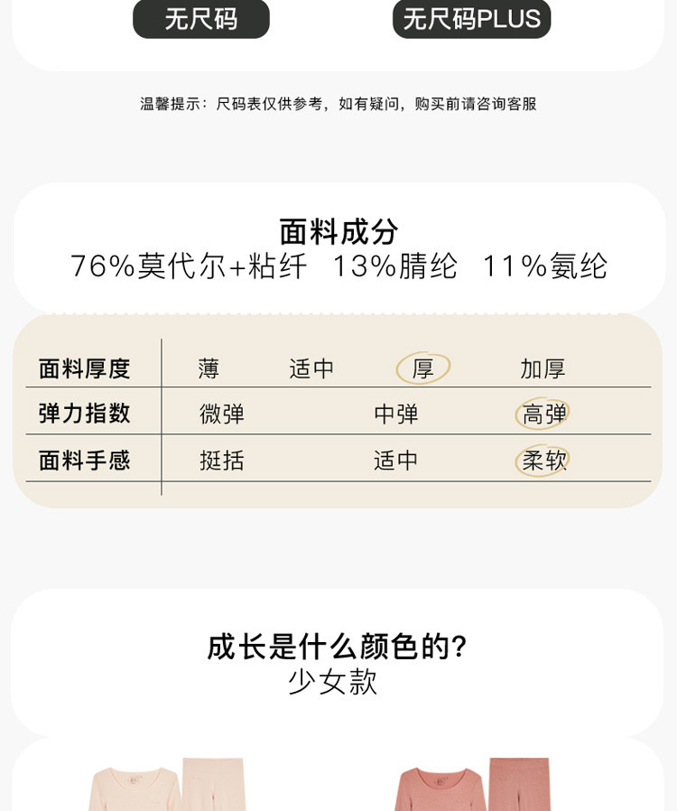 【旗下品牌likeuu】无尺码少女抑菌防静电儿童保暖套装 799296