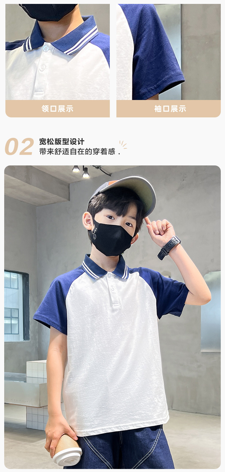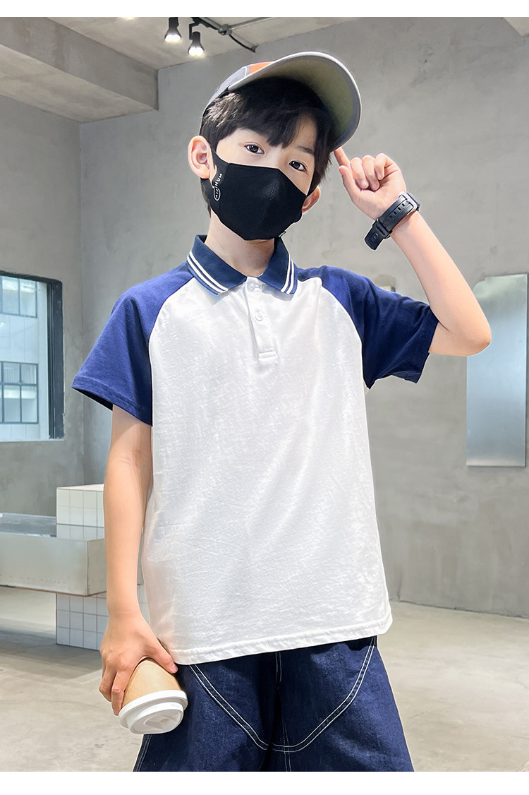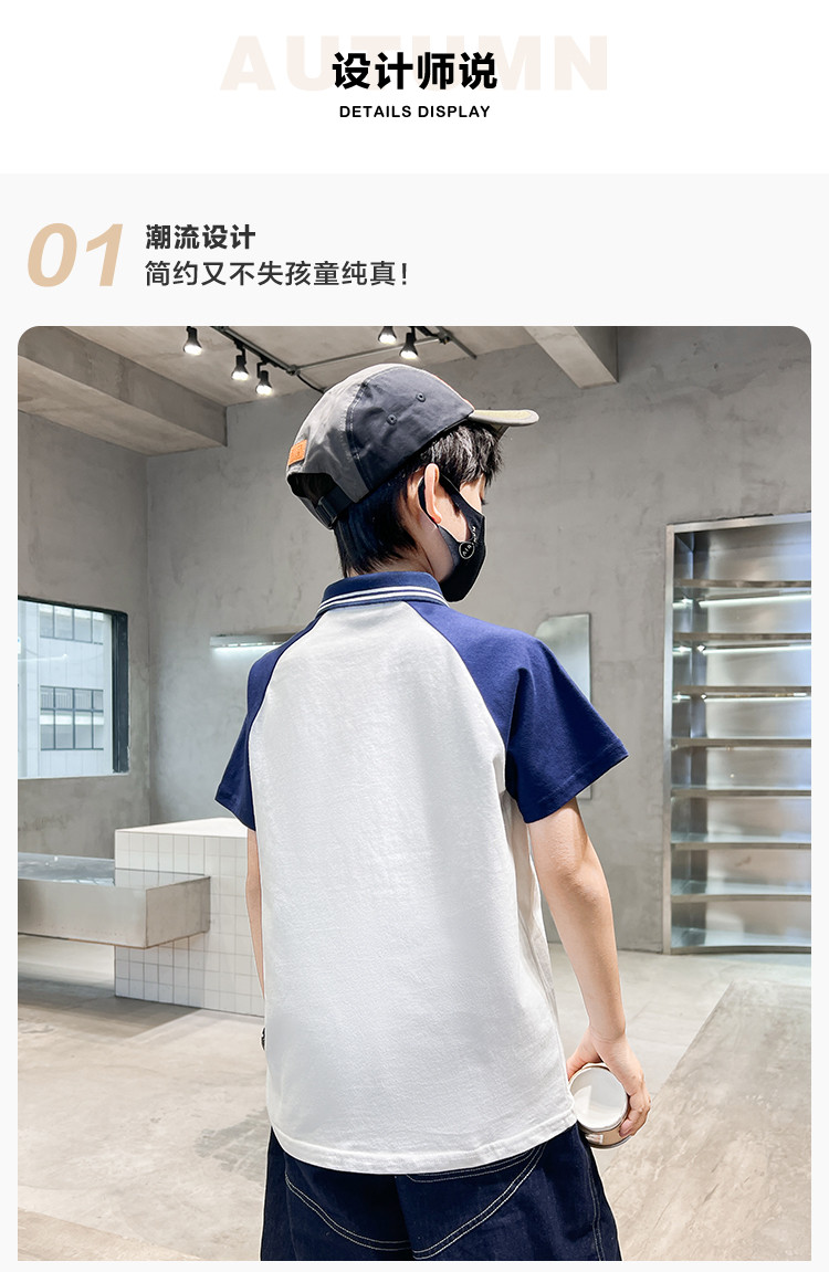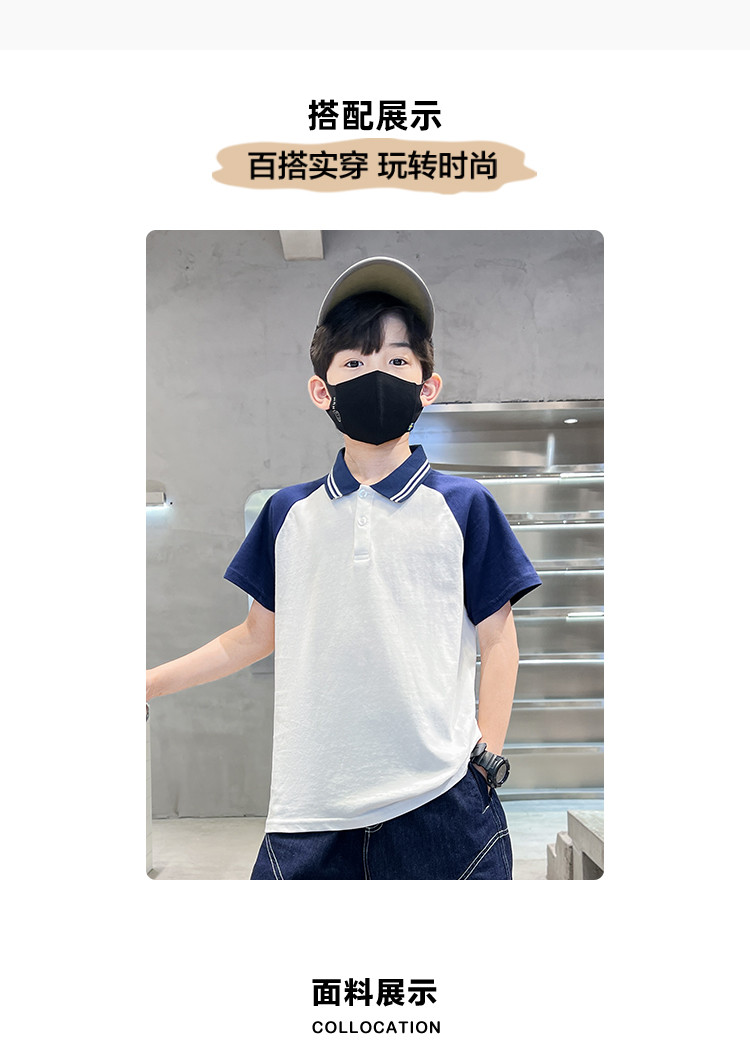 商品名称:男童短袖春秋时尚洋气儿童休闲风短袖打底衫中大童POLO领上衣 075343