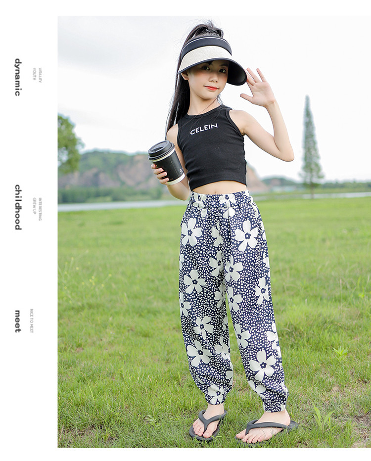 女童裤子秋季薄款儿童运动裤秋季九分裤休闲百搭中大童儿童裤子 564175