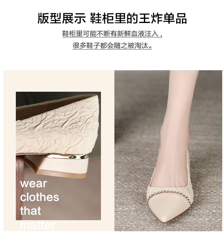 商品名称:2024年春秋小香风链条装饰材质拼接小单鞋女鞋 592385