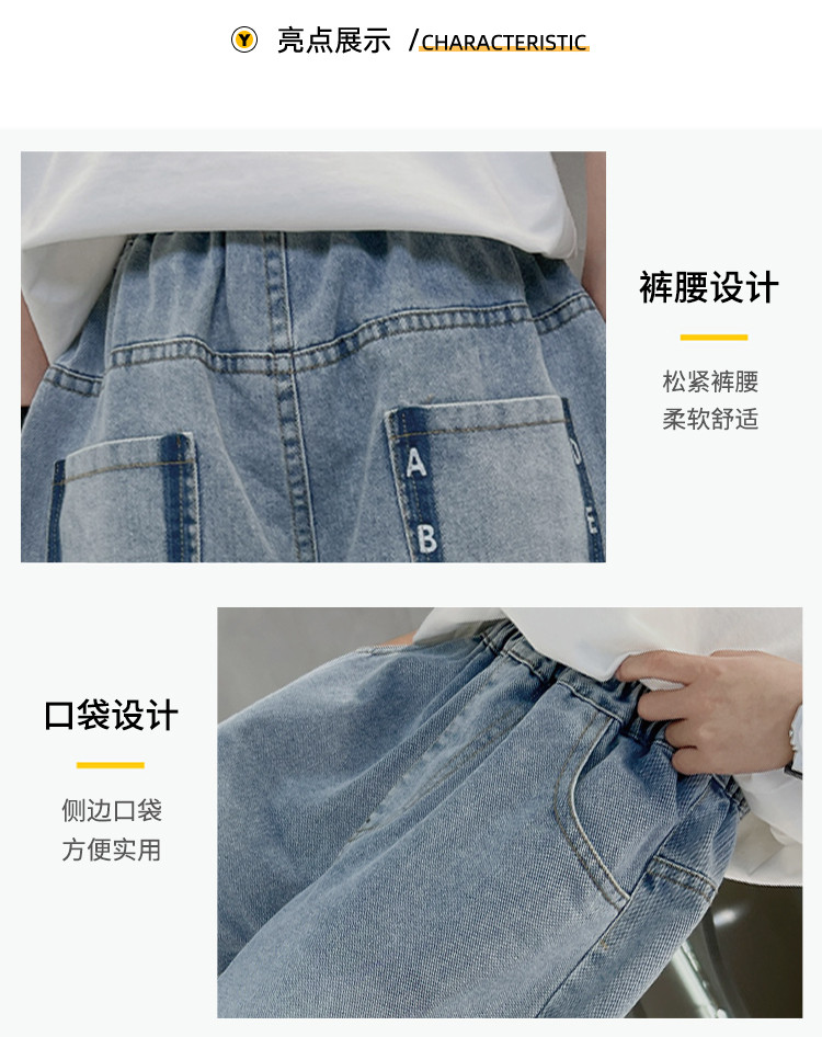 商品名称:男童裤子儿童牛仔裤2024儿童水洗牛仔短裤中大童百搭短裤 822799