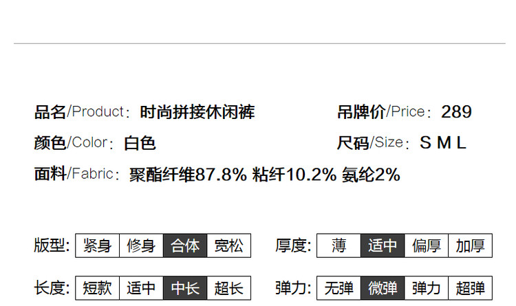 商品名称:【时尚拼接休闲裤】春秋通勤松紧腰长裤微弹女裤子女 170689