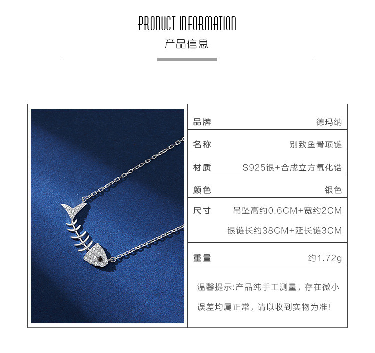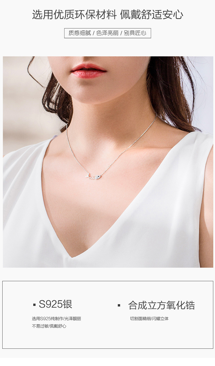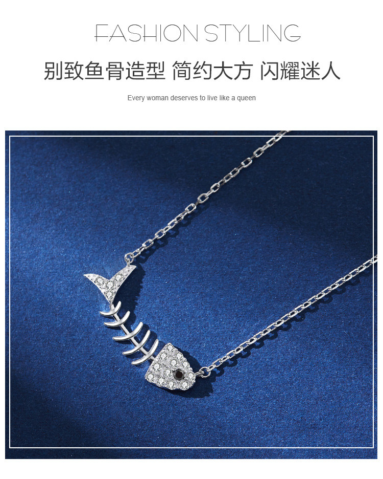 商品名称:小众个性设计感鱼骨吊坠925银项链冷淡风ins潮锁骨链女 530753